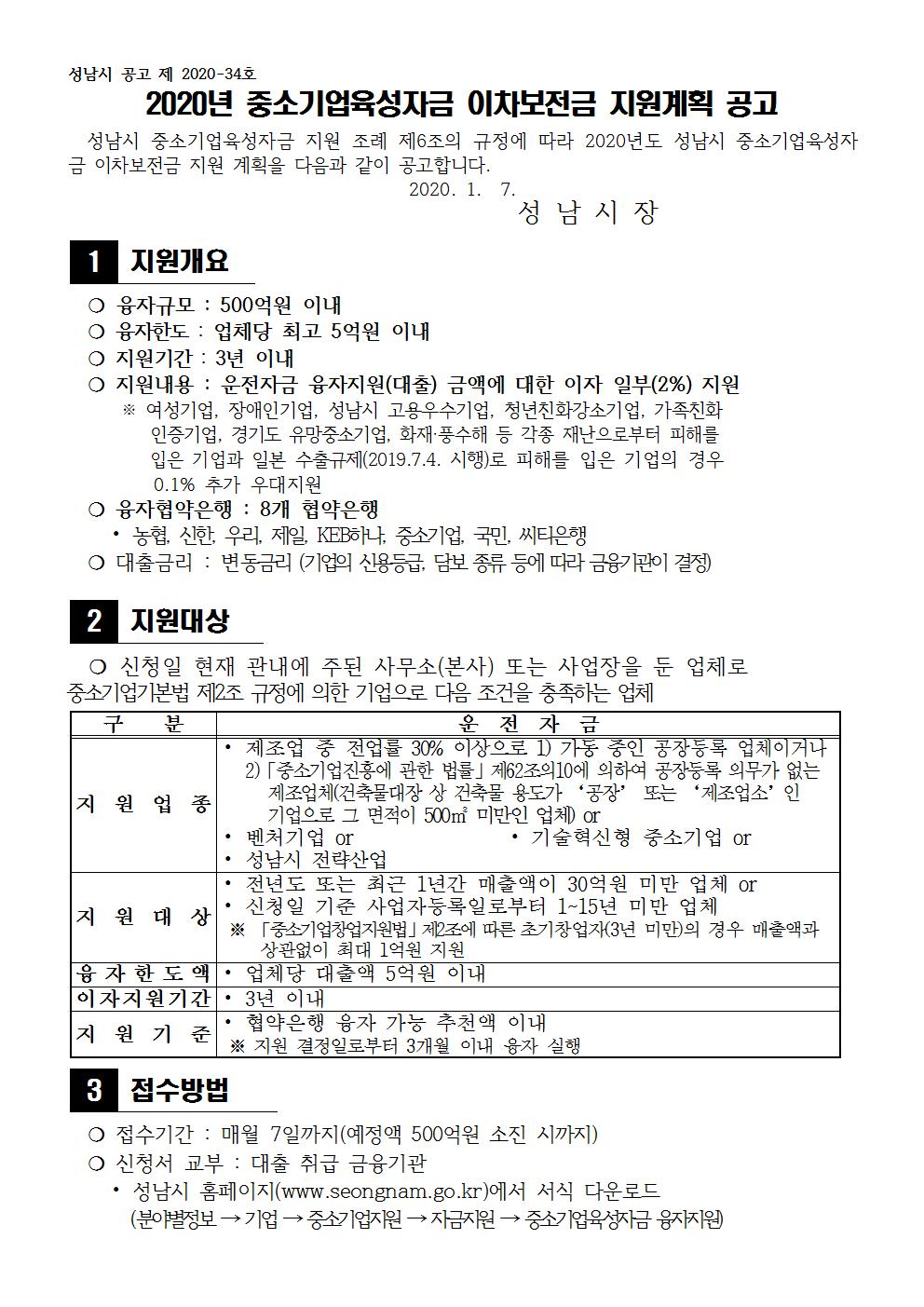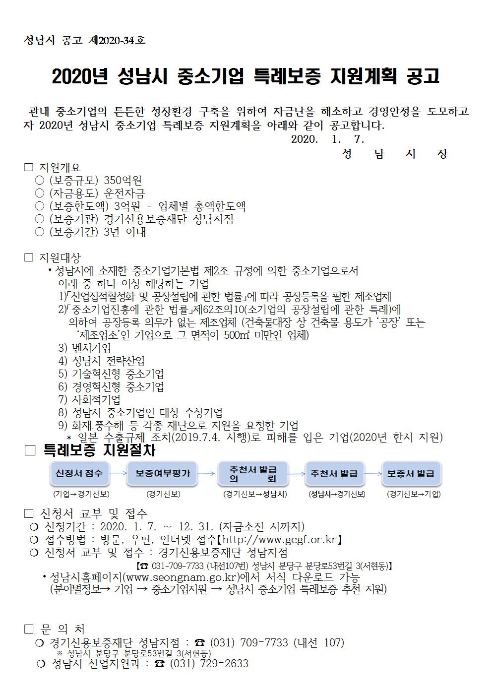 게시용- 2020년 성남시 중소기업 특례보증 지원계획 공고문수정.hwp