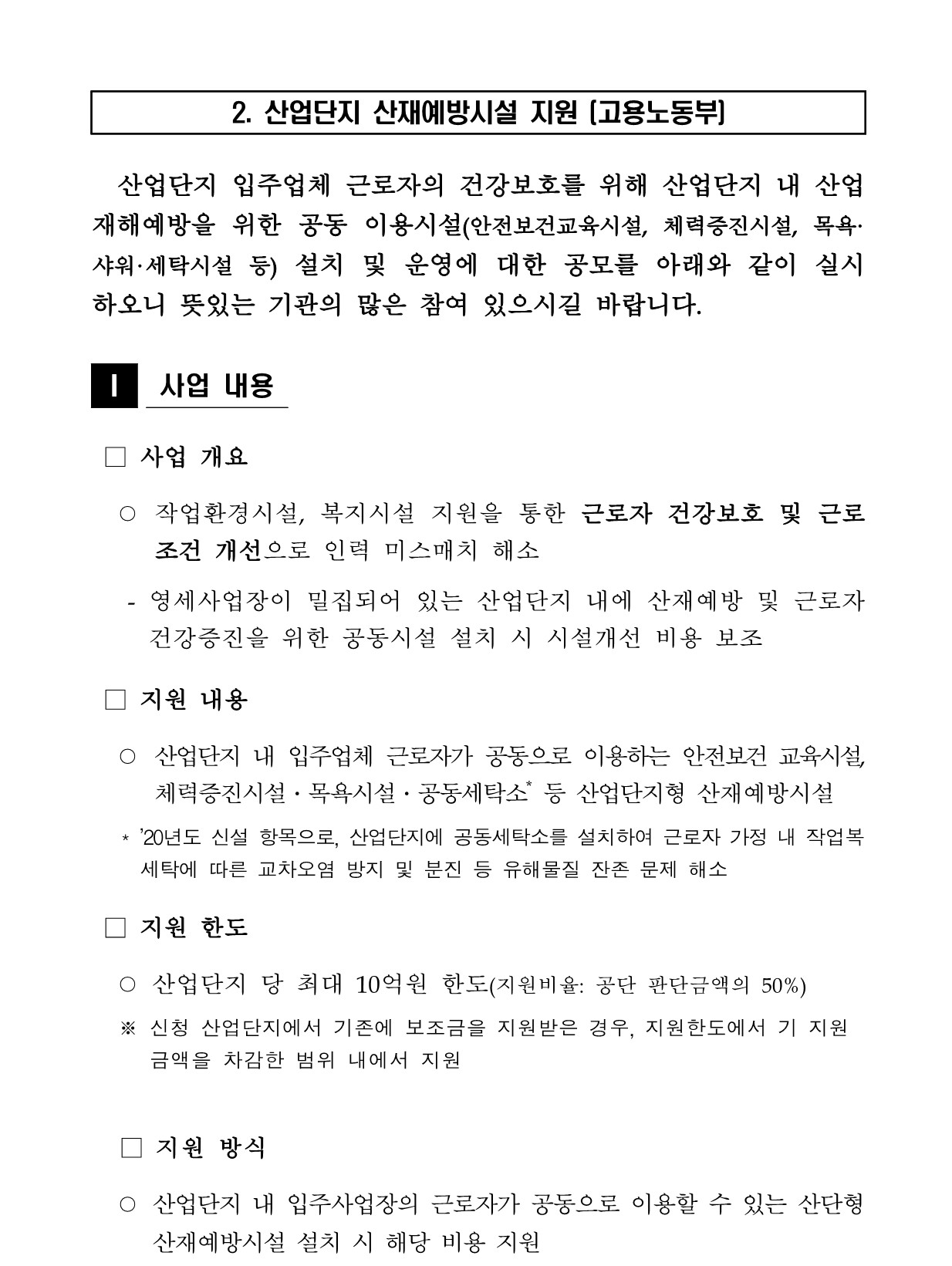 [공지] 고용노동부 산업단지 산재예방시설 지원 안내