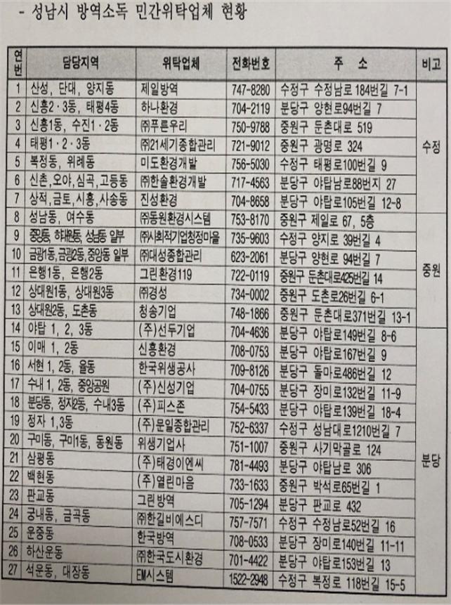 [공지] 성남시 방역소독 민간위탁업체 현황