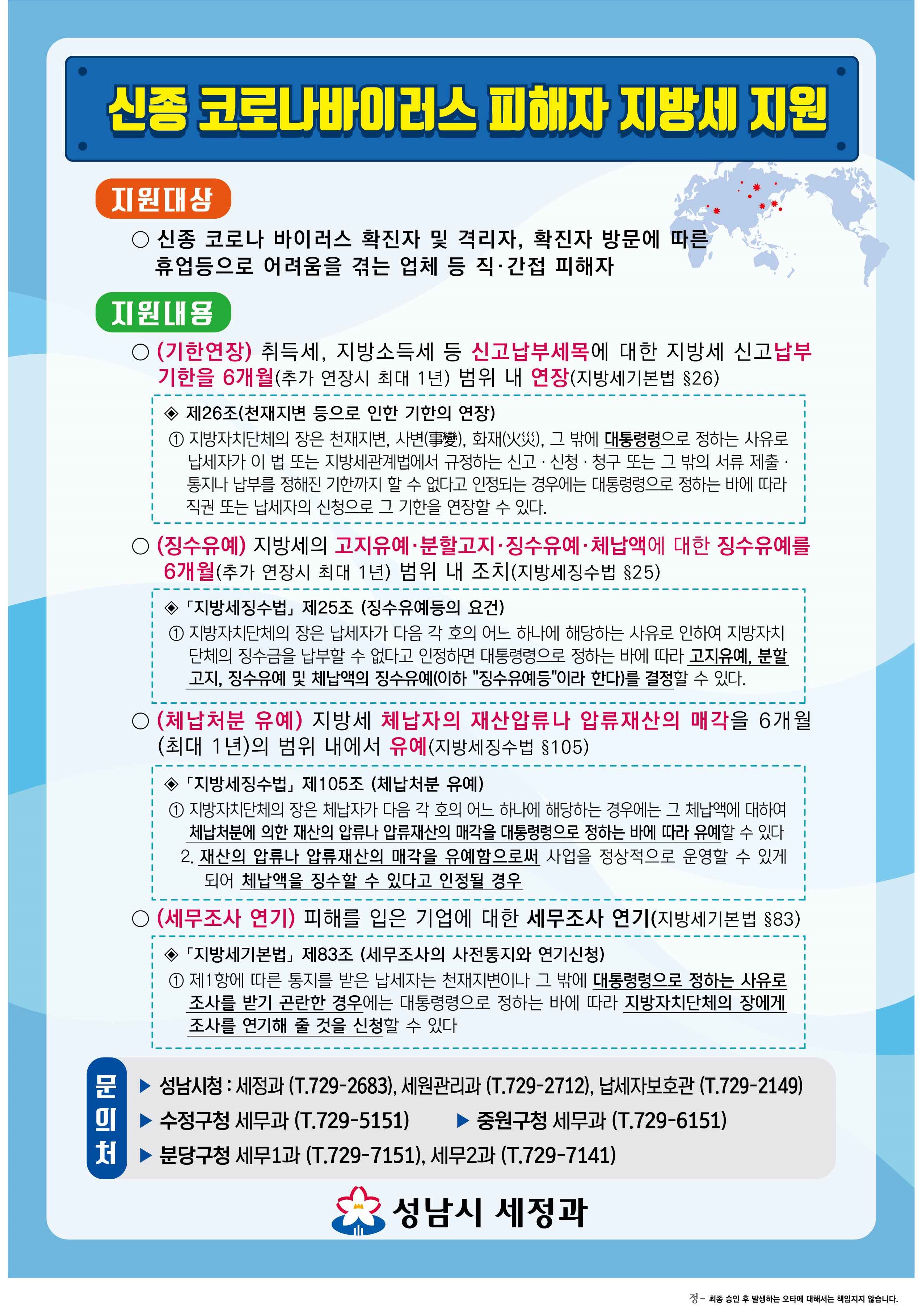 [공지] 코로나19관련 성남시 지방세 지원사업 안내