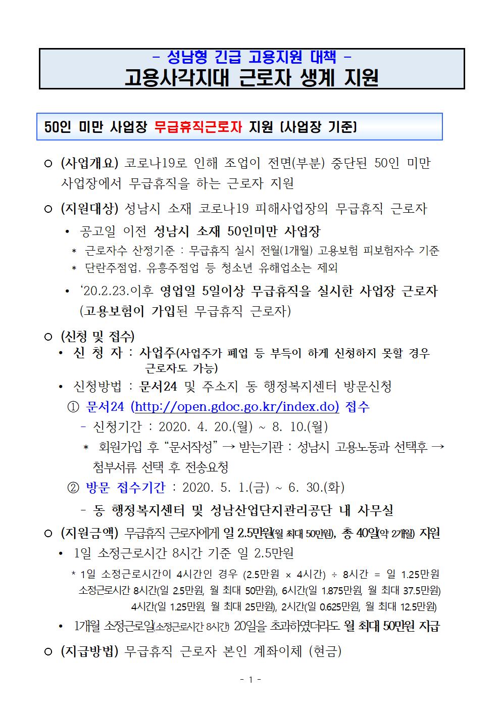 [공지] [코로나19 성남시긴급고용지원대책] 50인 미만 사업장 근로자 지원
