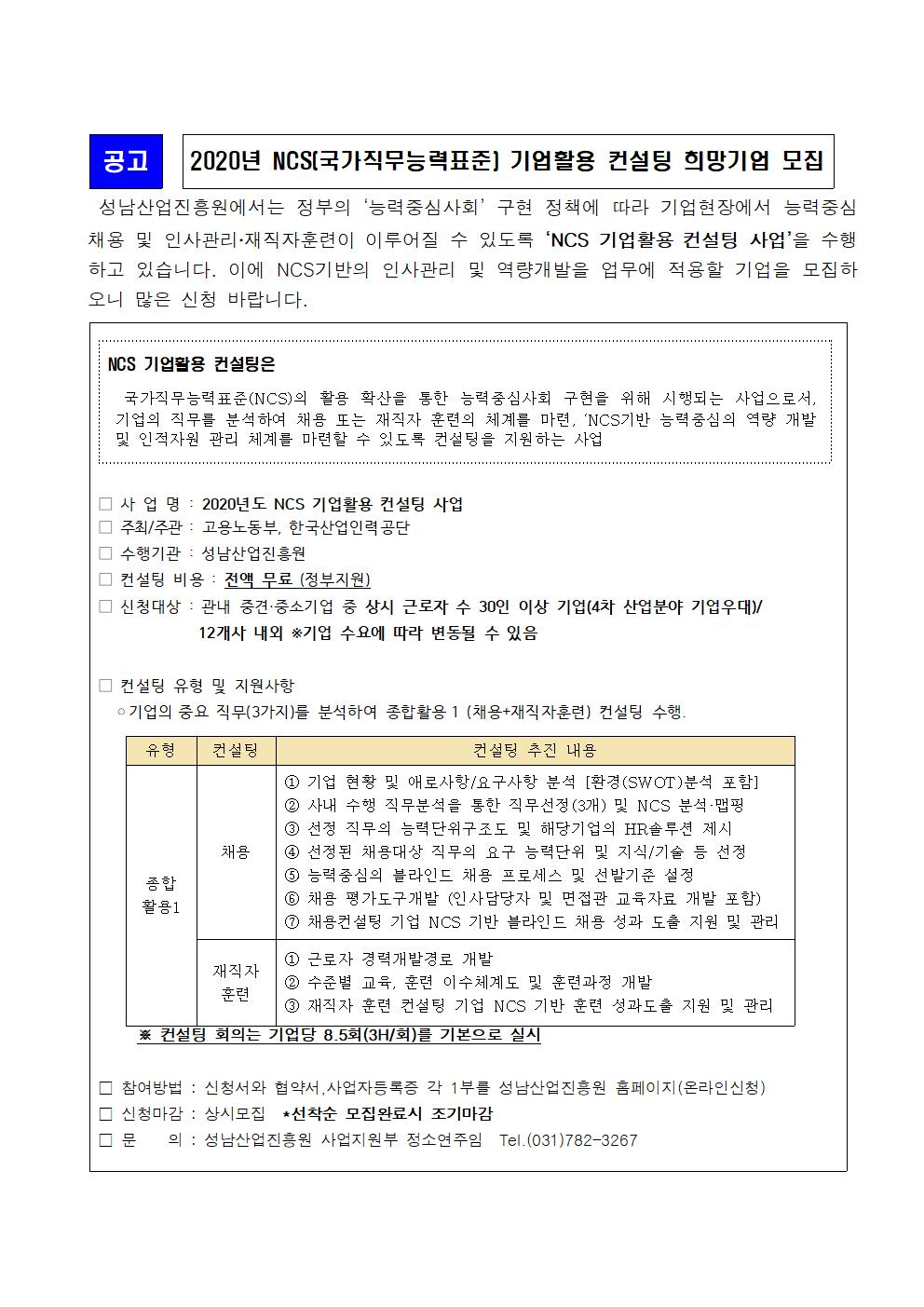 [공지] 2020년 NCS(국가직무능력표준) 기업활용 컨설팅 희망기업 모집