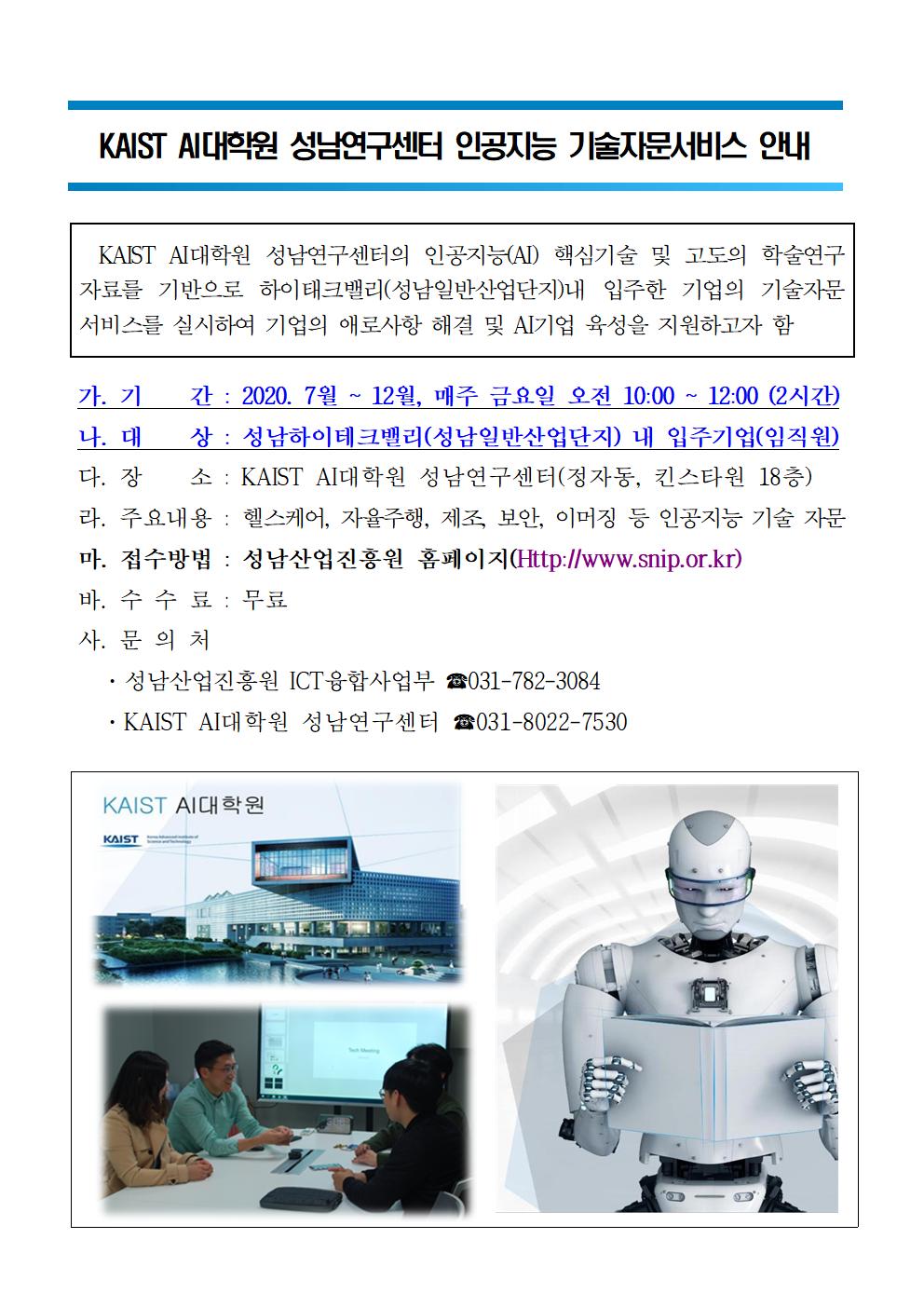 [지원] KAIST AI대학원 성남연구센터 인공지능 기술자문 서비스 안내