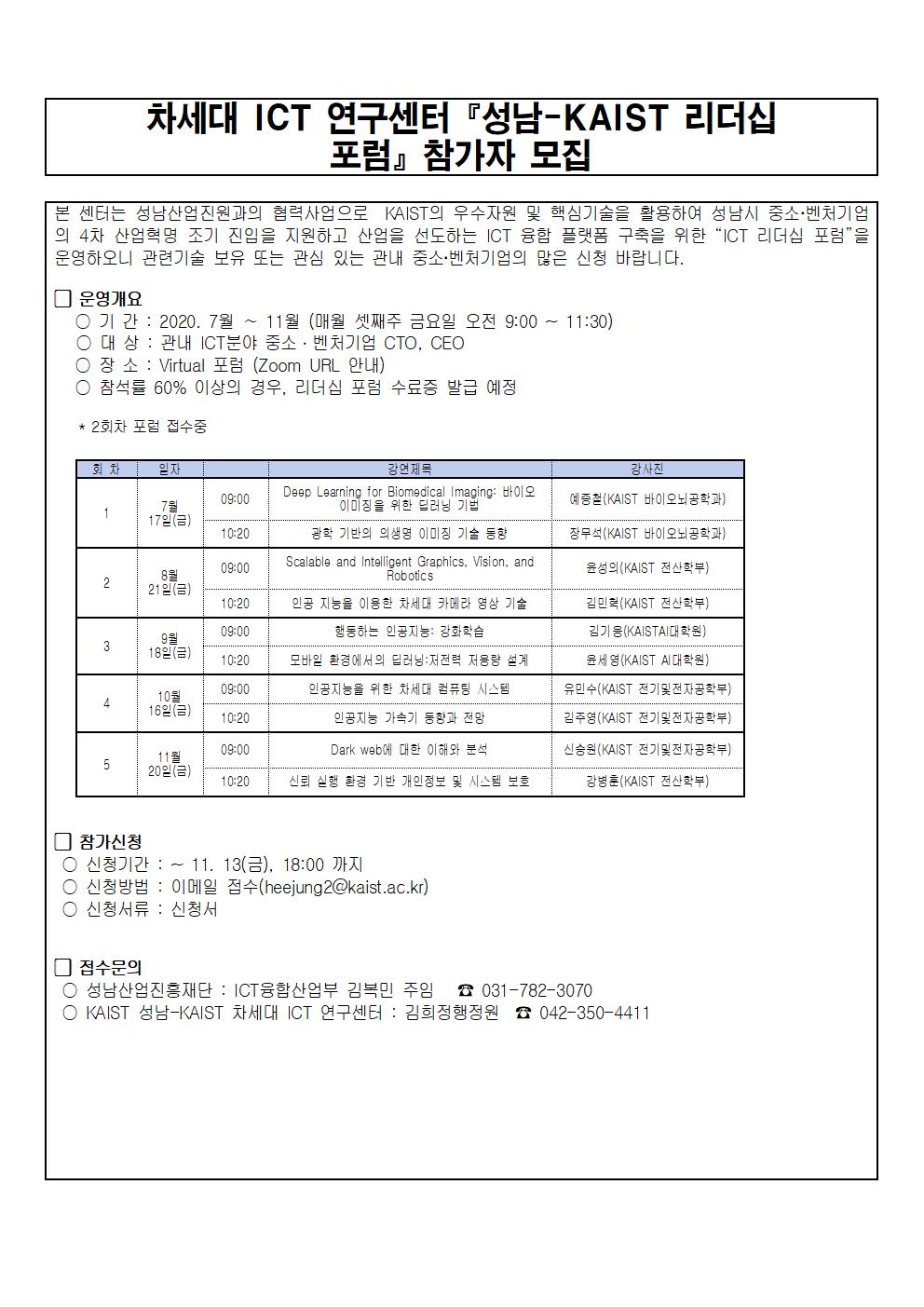 [지원] 차세대 ICT 연구센터『성남-KAIST 리더십 포럼』참가자 모집 안내