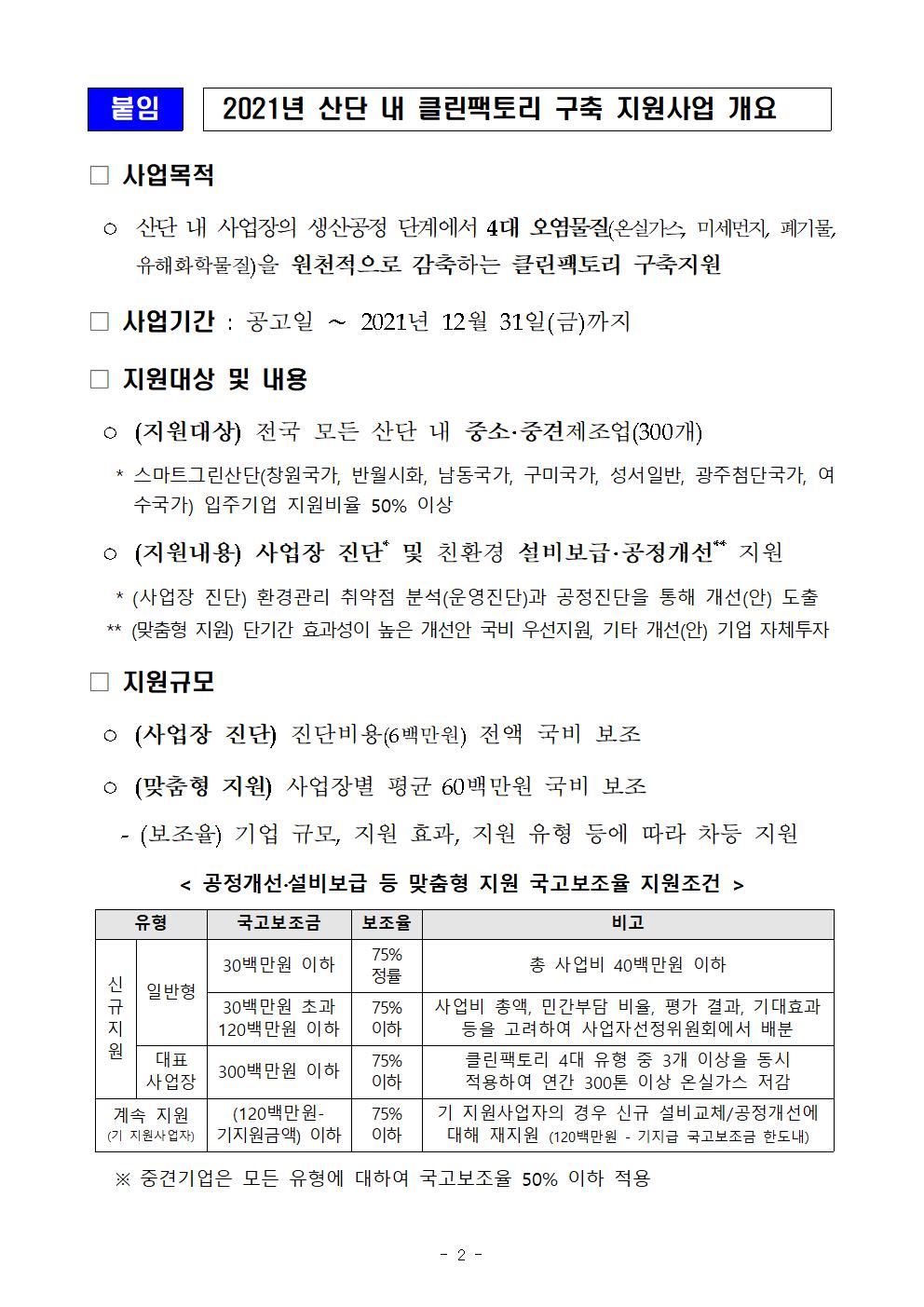 [공지] 2021년도 산단 내 클린팩토리 구축지원 사업 공고