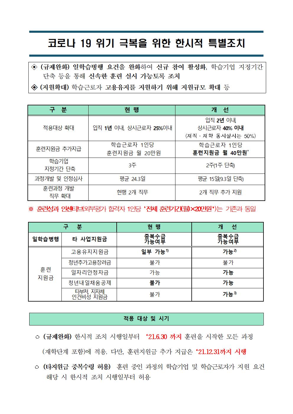 [공지] (한국폴리텍대학교)일학습병행제 안내 및 코로나로 인한 규제완화 및 지원확대 안내