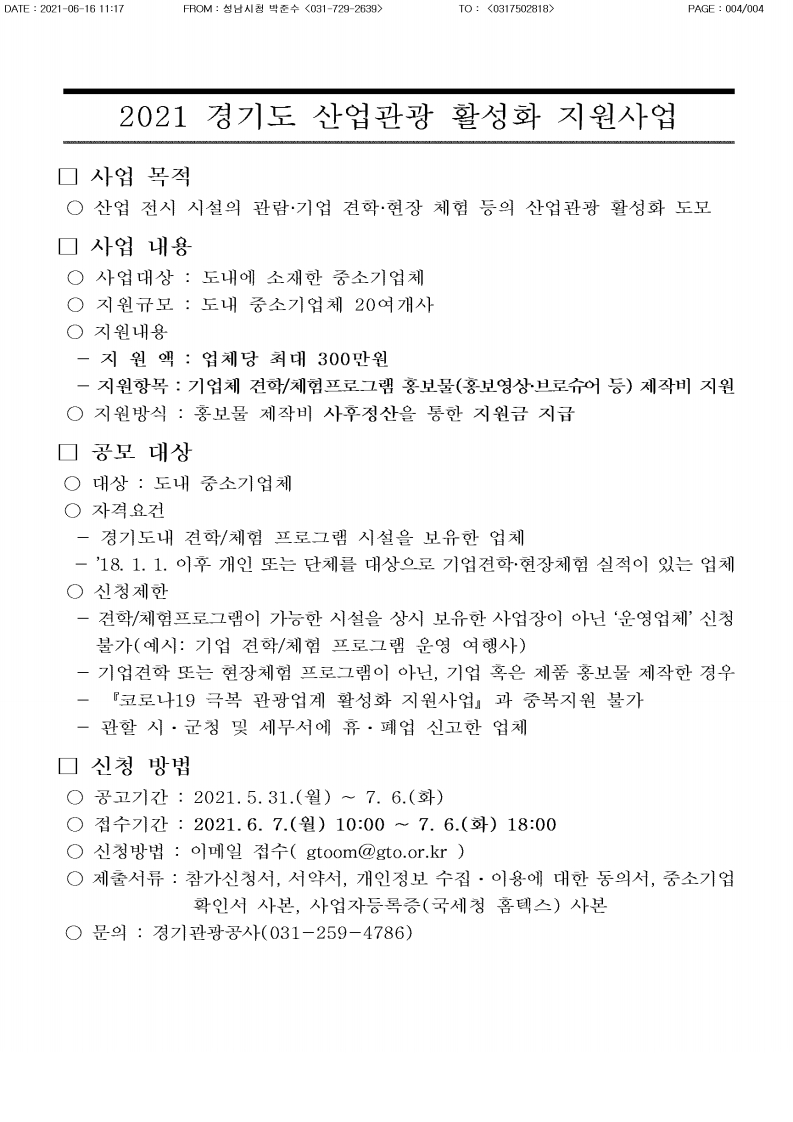 [공지] 2021 경기도 산업관광 활성화 지원사업