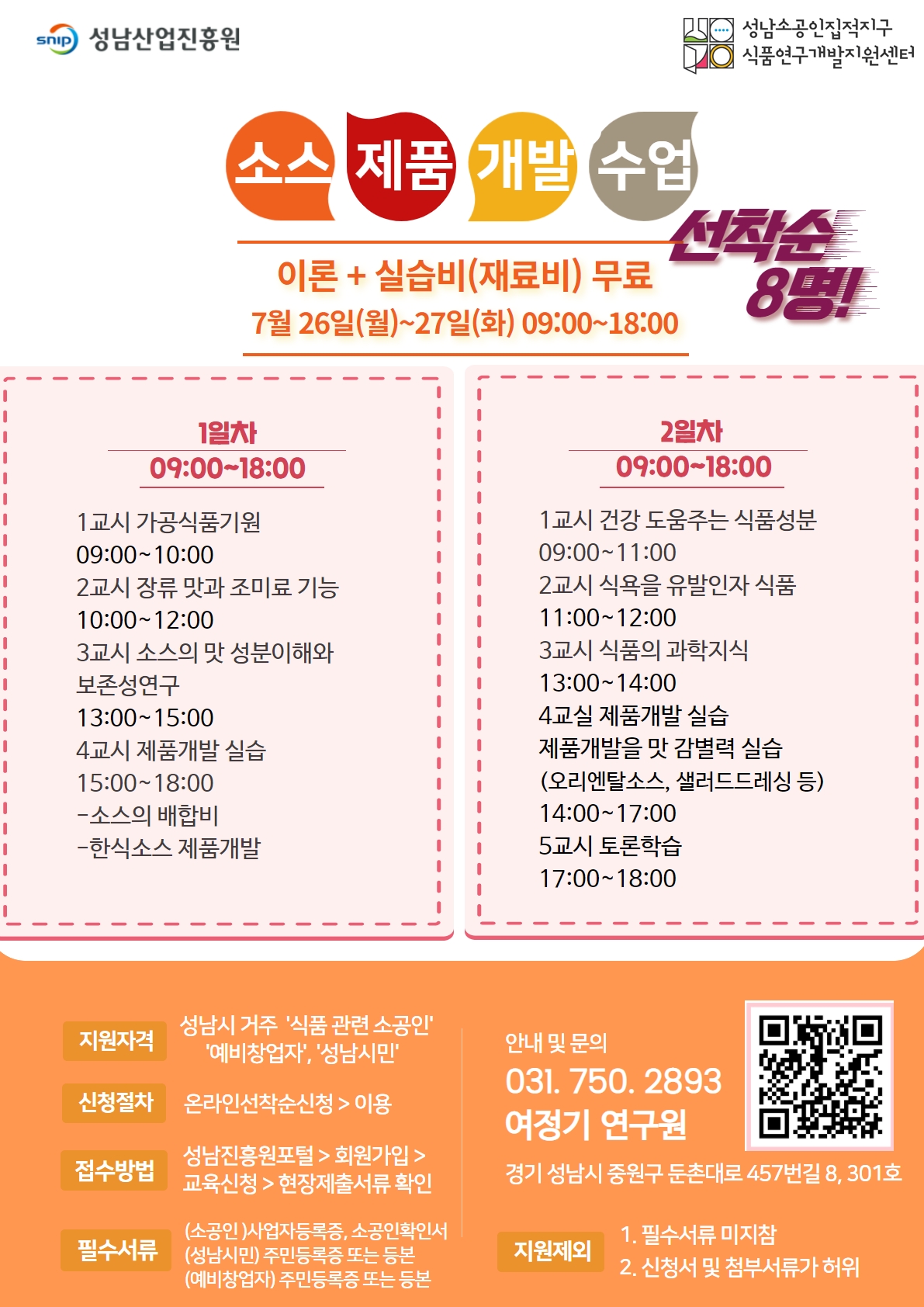 [공지] [성남산업진흥원][성남소공인집적지구 식품연구개발지원센터]소스제품개발 수업