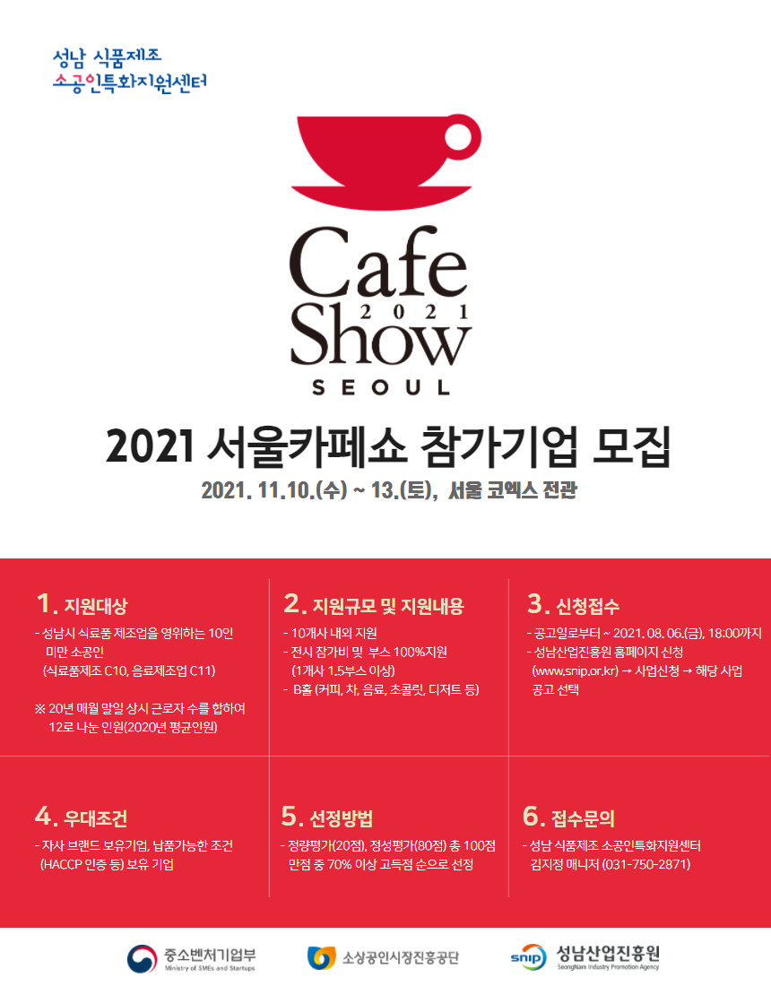 [공지] [성남산업진흥원]2021 서울카페쇼 참가기업 모집