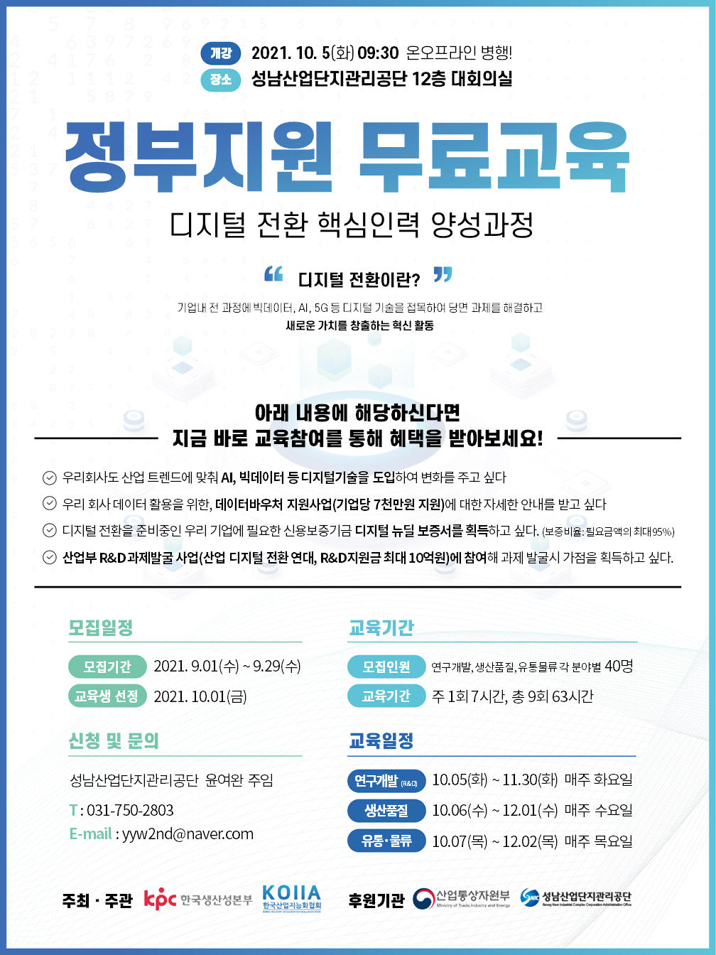 [공지] (정부지원 무료교육)디지털 전환 핵심인력 양성과정 모집