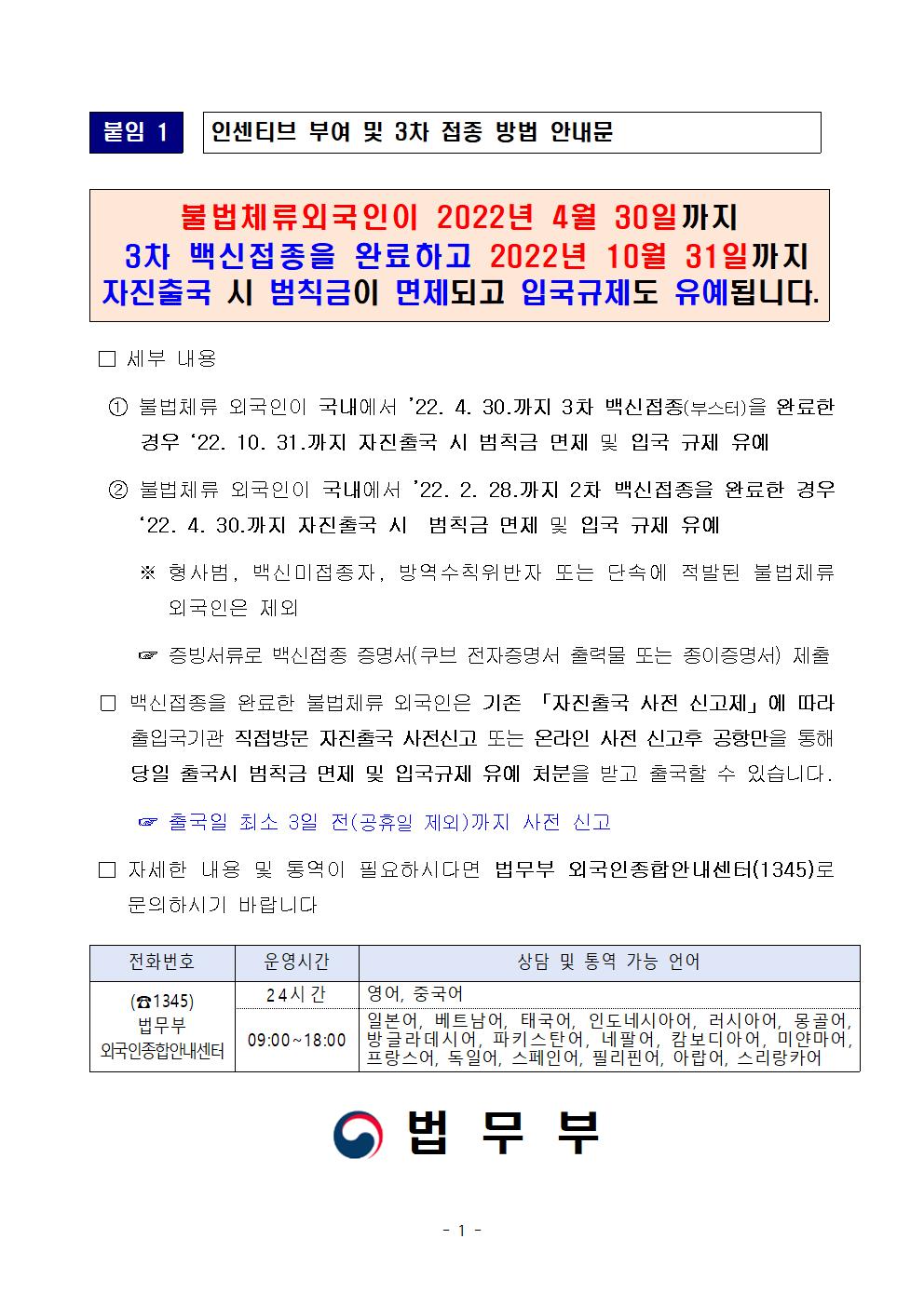 [공지] 국내 체류 외국인 대상 3차 접종 안내