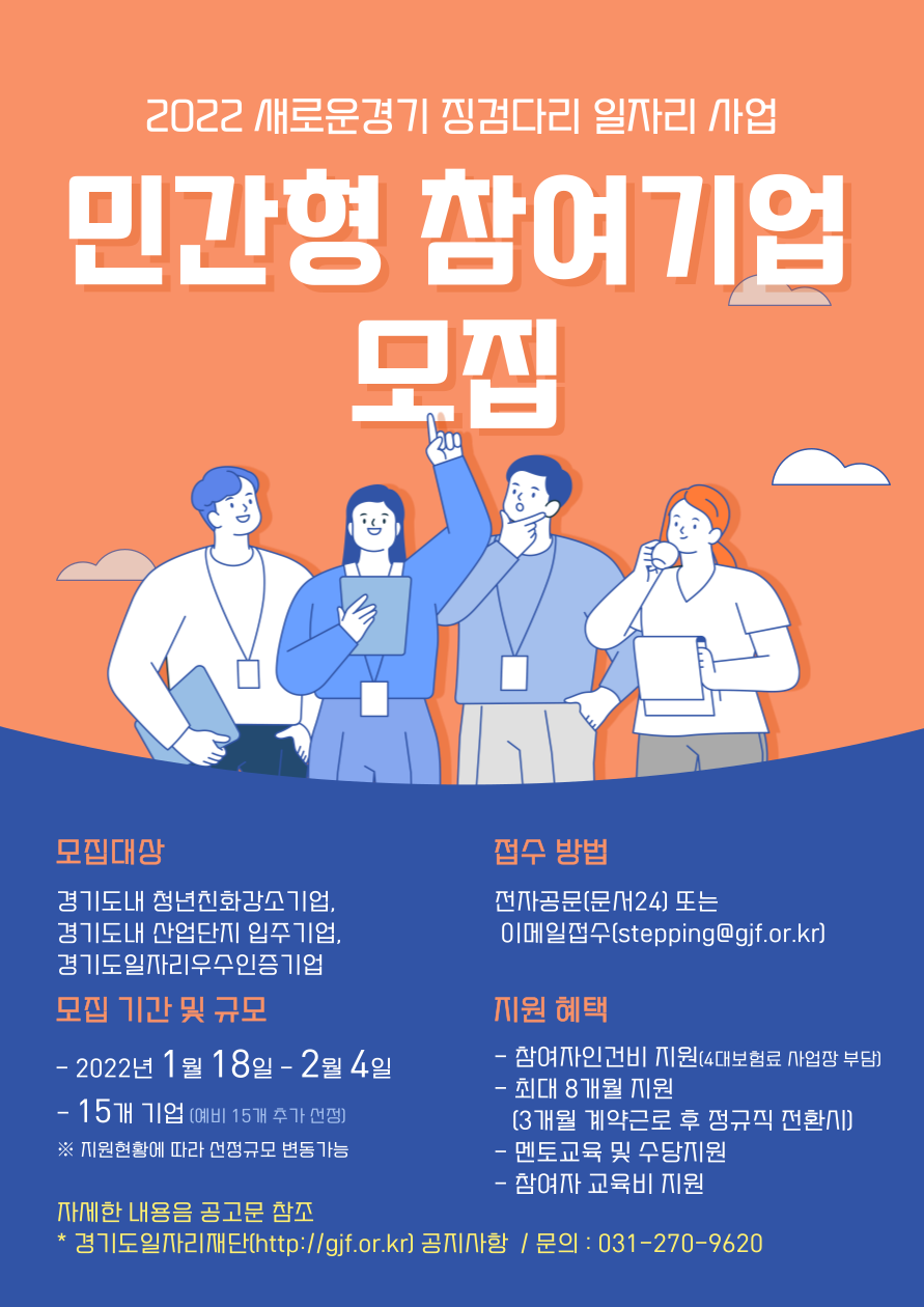 [공지] 22년 새로운 경기 징검다리 일자리사업 민간형 참여사업장 모집 홍보