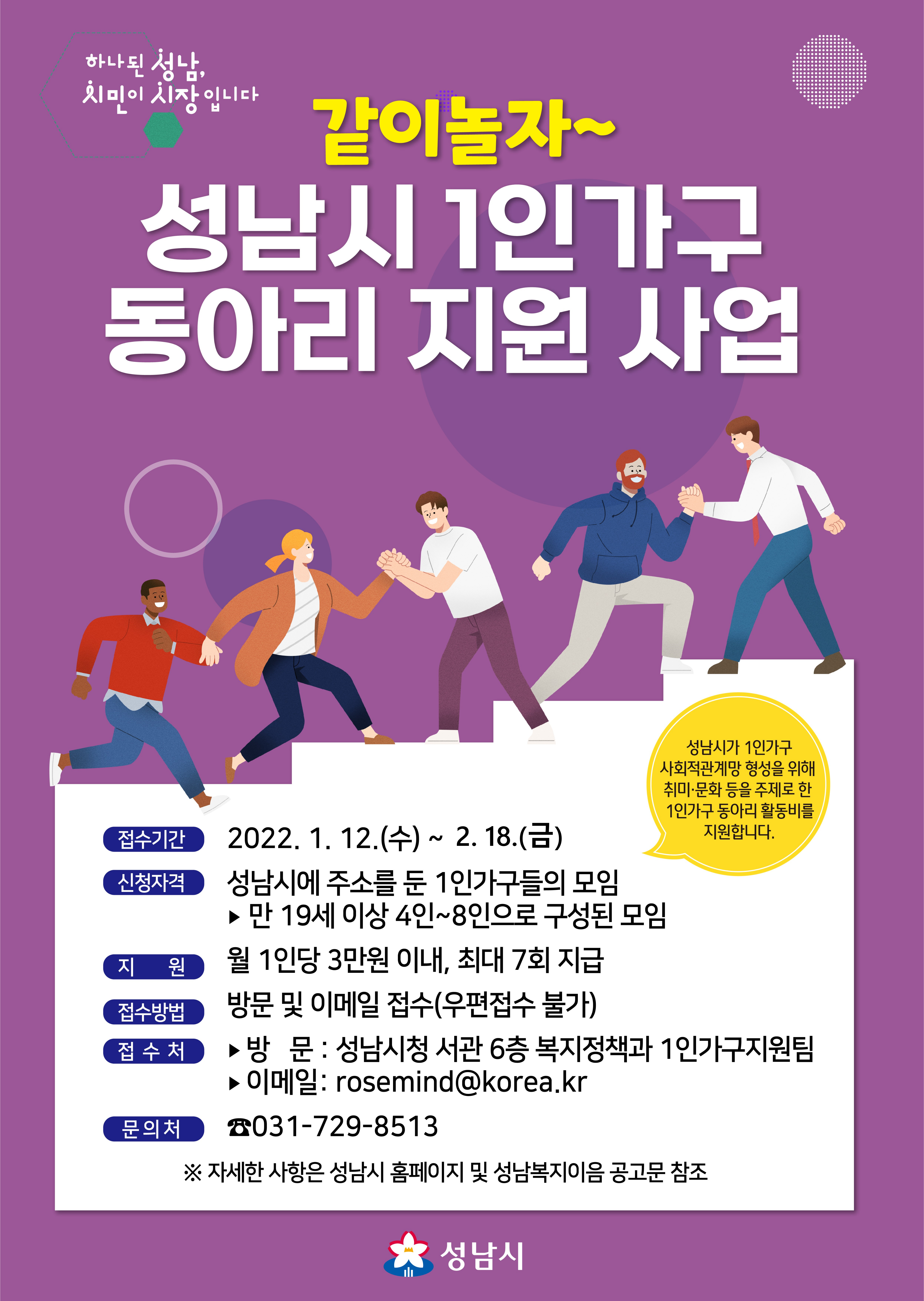 [공지] (같이놀자)성남시 1인가구 동아리지원사업