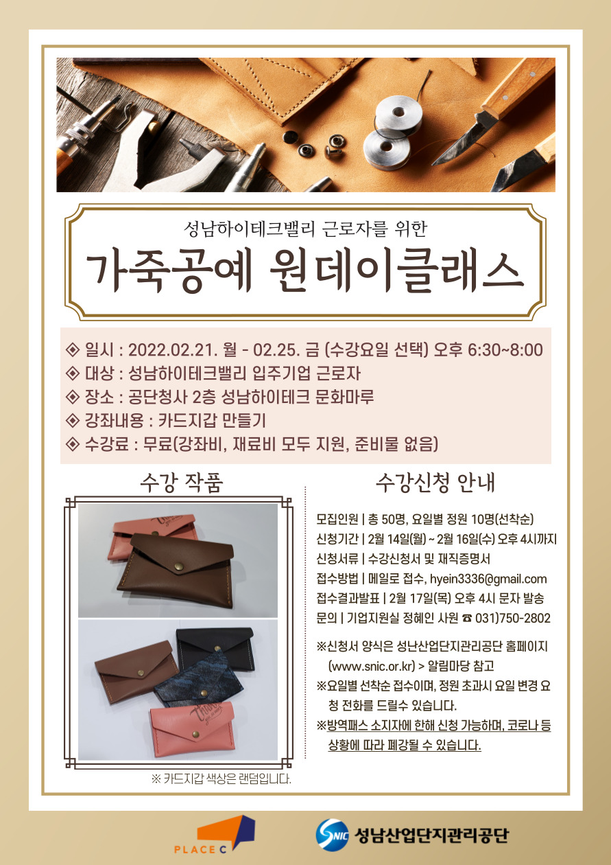[공지] 성남하이테크 문화마루 2월 가죽공예 원데이클래스 지원 안내