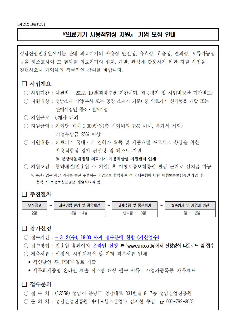 [공지] [성남산업진흥원]『의료기기 사용적합성 지원』 기업 모집 안내