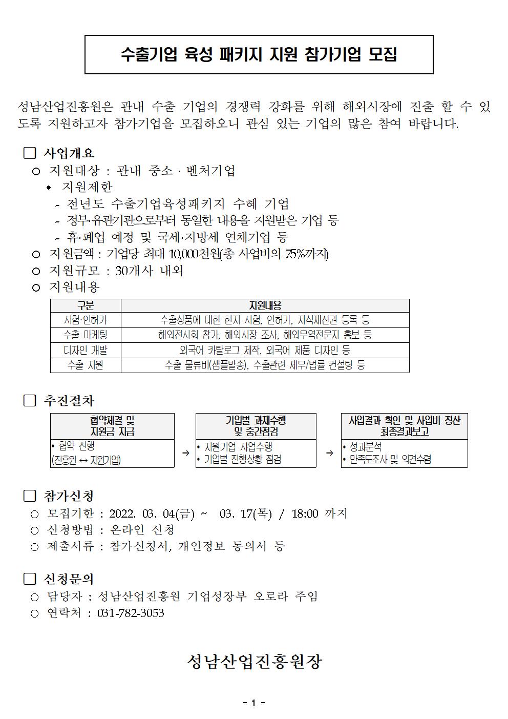 [공지] [성남산업진흥원]수출기업육성패키지 지원기업 모집 안내