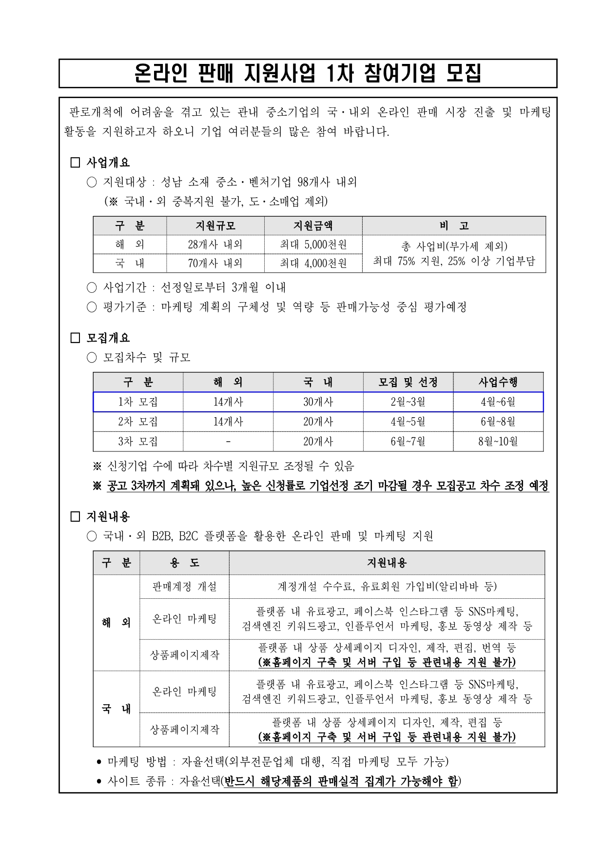 [공지] [성남산업진흥원]온라인 판매 지원사업 참여기업 모집 안내