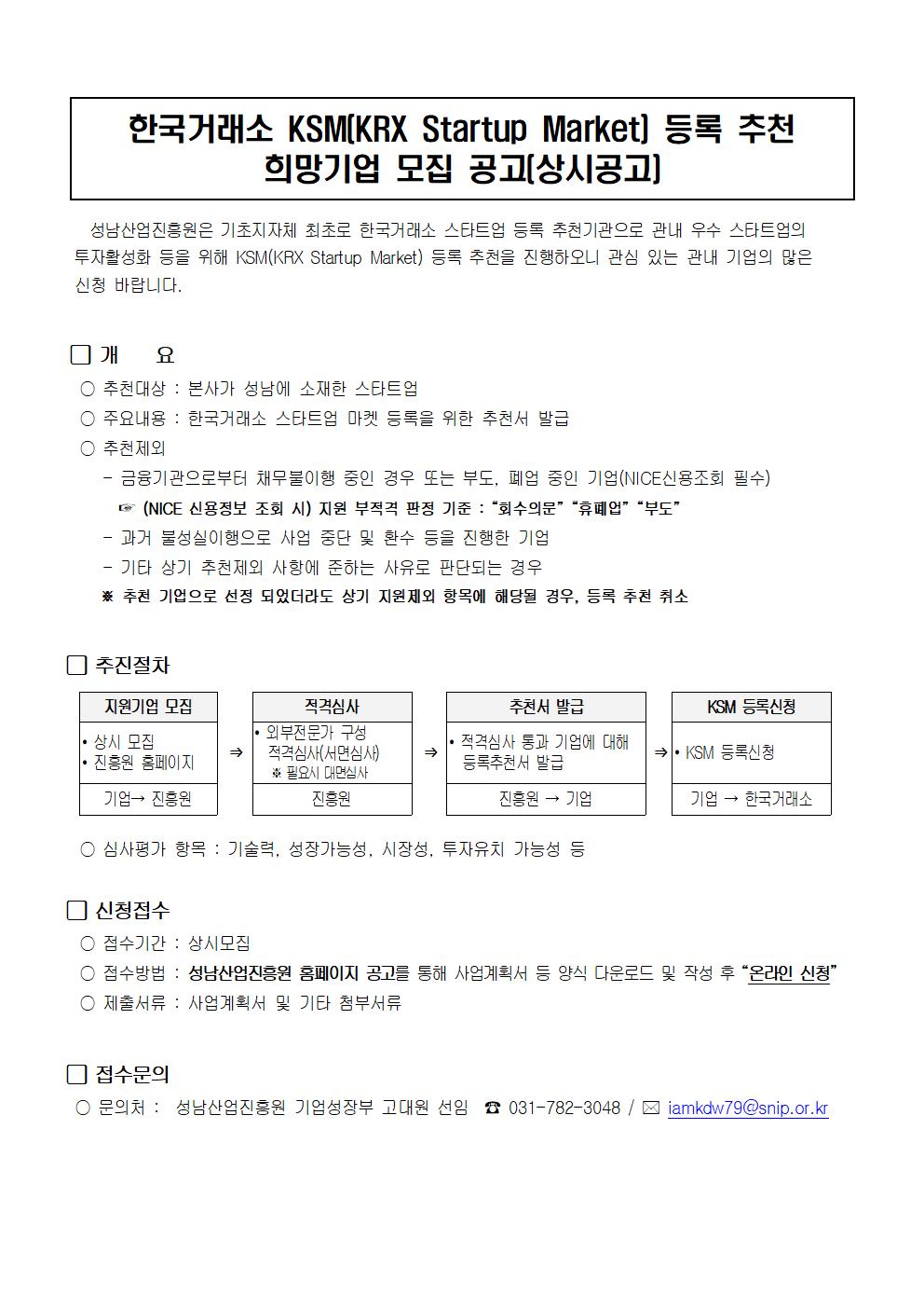[공지] [성남산업진흥원]한국거래소 KSM 등록 추천 희망기업 모집 안내