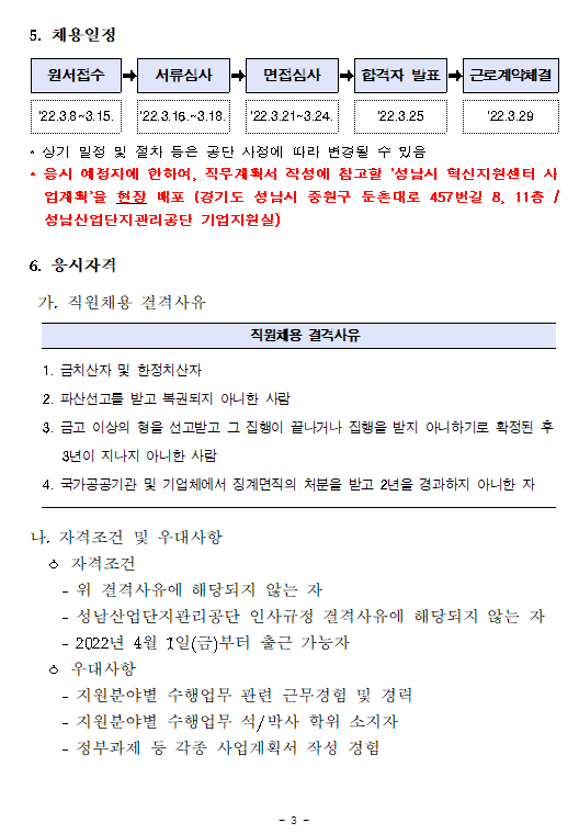 • - 첨부파일: 220308_성남시_혁신지원센터_전문계약직_채용공고.pdf (191.22K) - 다운로드   243   2022-03-10 14:30:07
