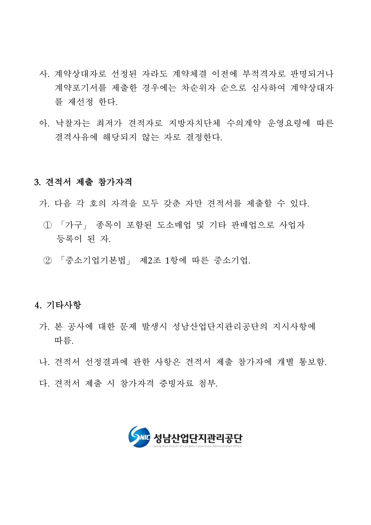 [공지] 성남산업단지 혁신지원센터 가구납품업체 수의계약 안내 공고