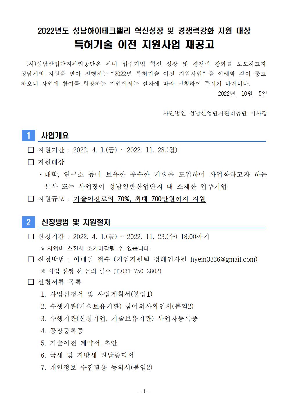 - 첨부파일: 2022년_특허기술_이전_지원사업_공고.pdf (109.17K) -