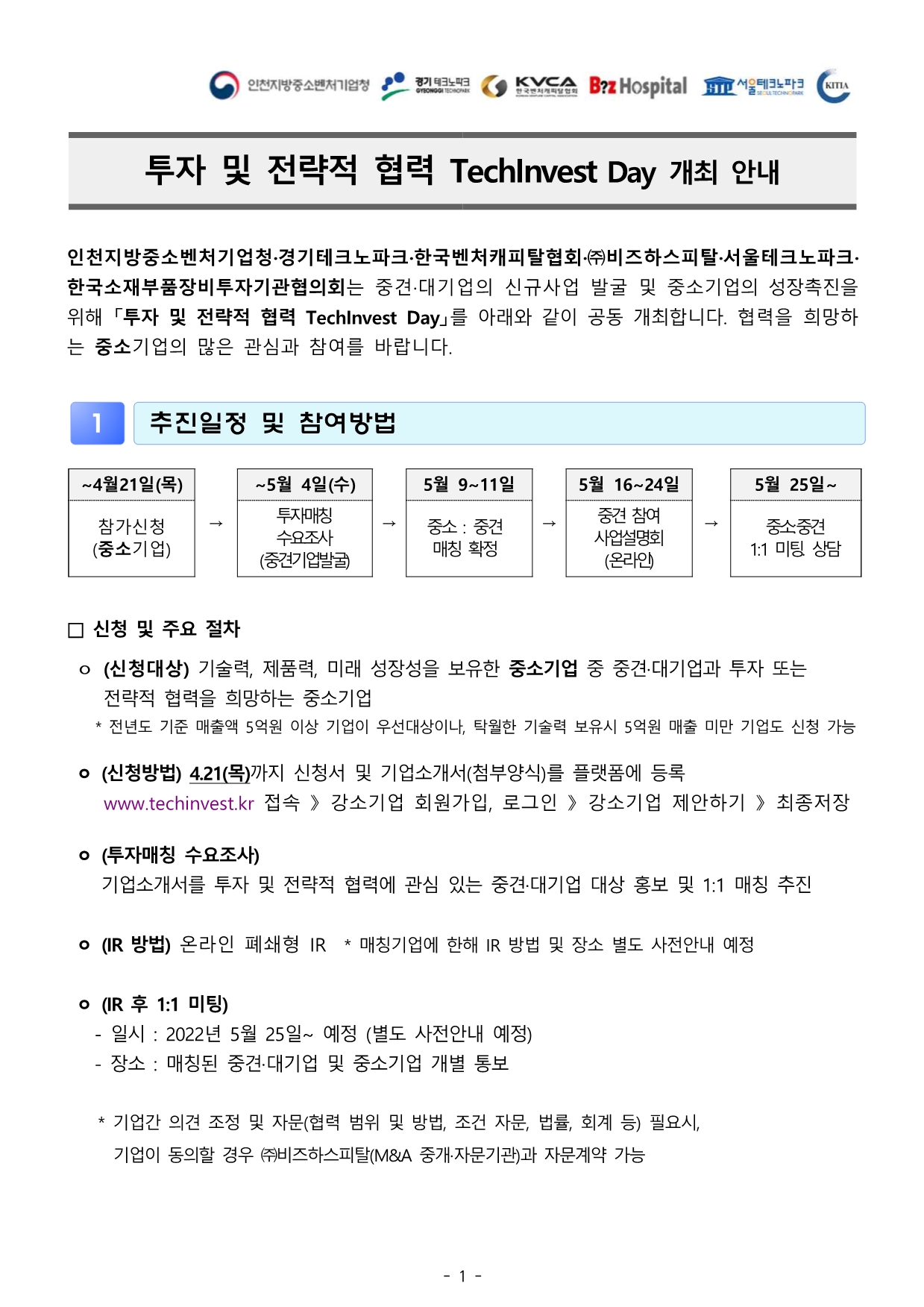 [공지] (중소기업 지원)투자 및 전략적 협력 TechInvest Day 개최 안내