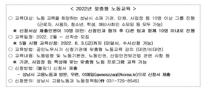 [교육] 22년 6월 성남시민을 위한 맞춤형 노동교육 신청 안내