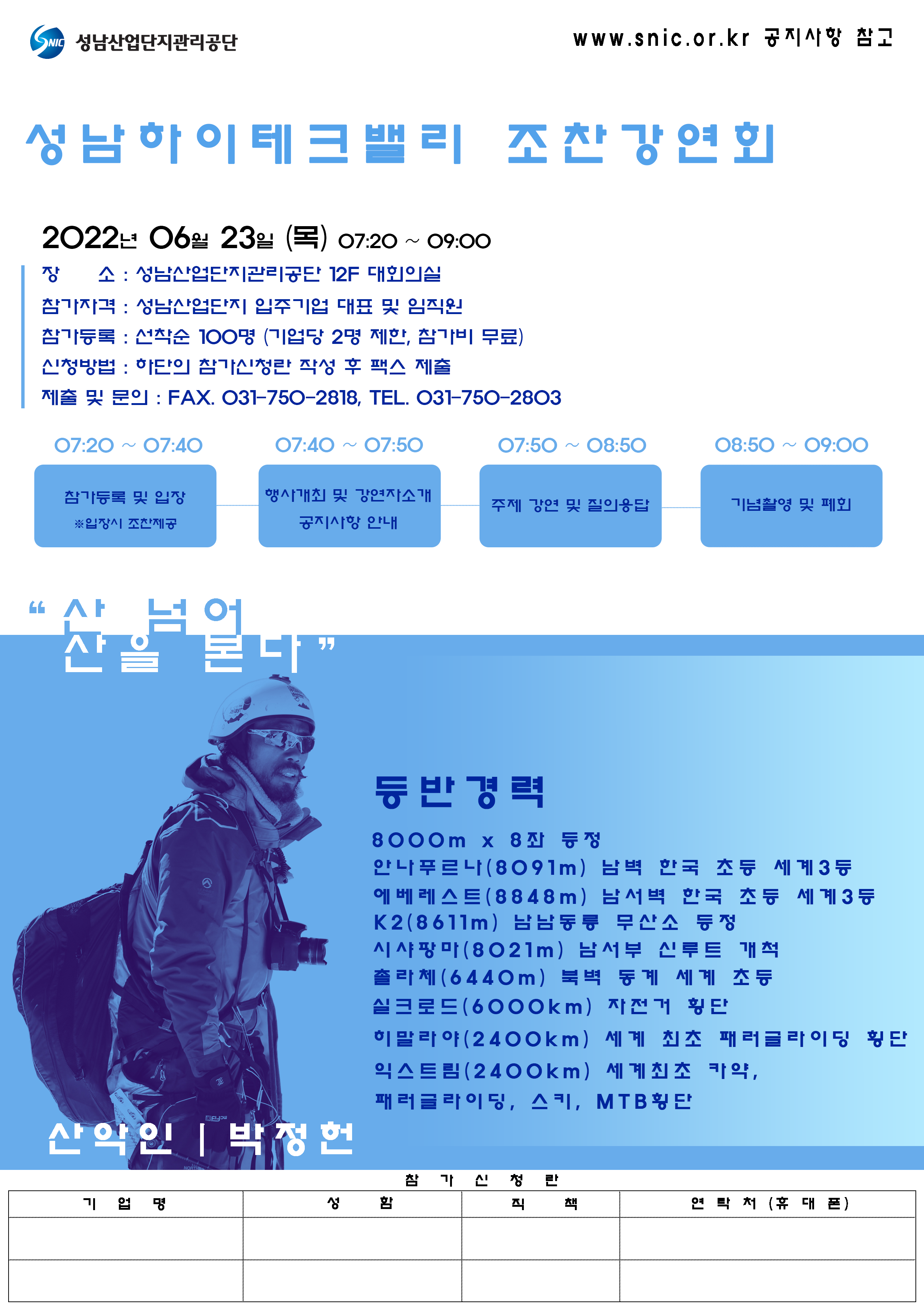 [행사] 2022년 6월 성남하이테크밸리 조찬강연회 개최 안내