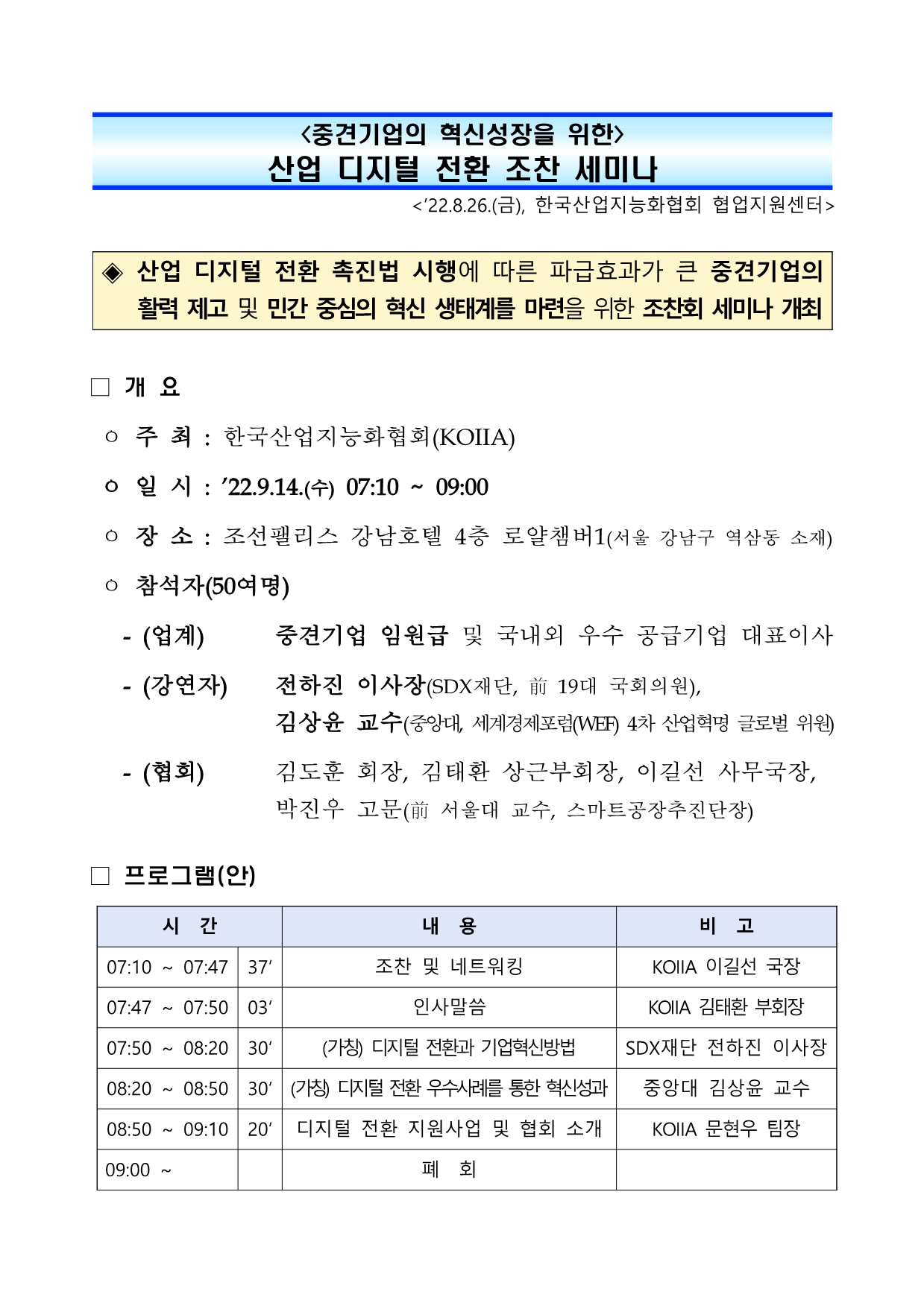 [행사] [한국산업지능화협회]산업 디지털 전환 조찬 세미나