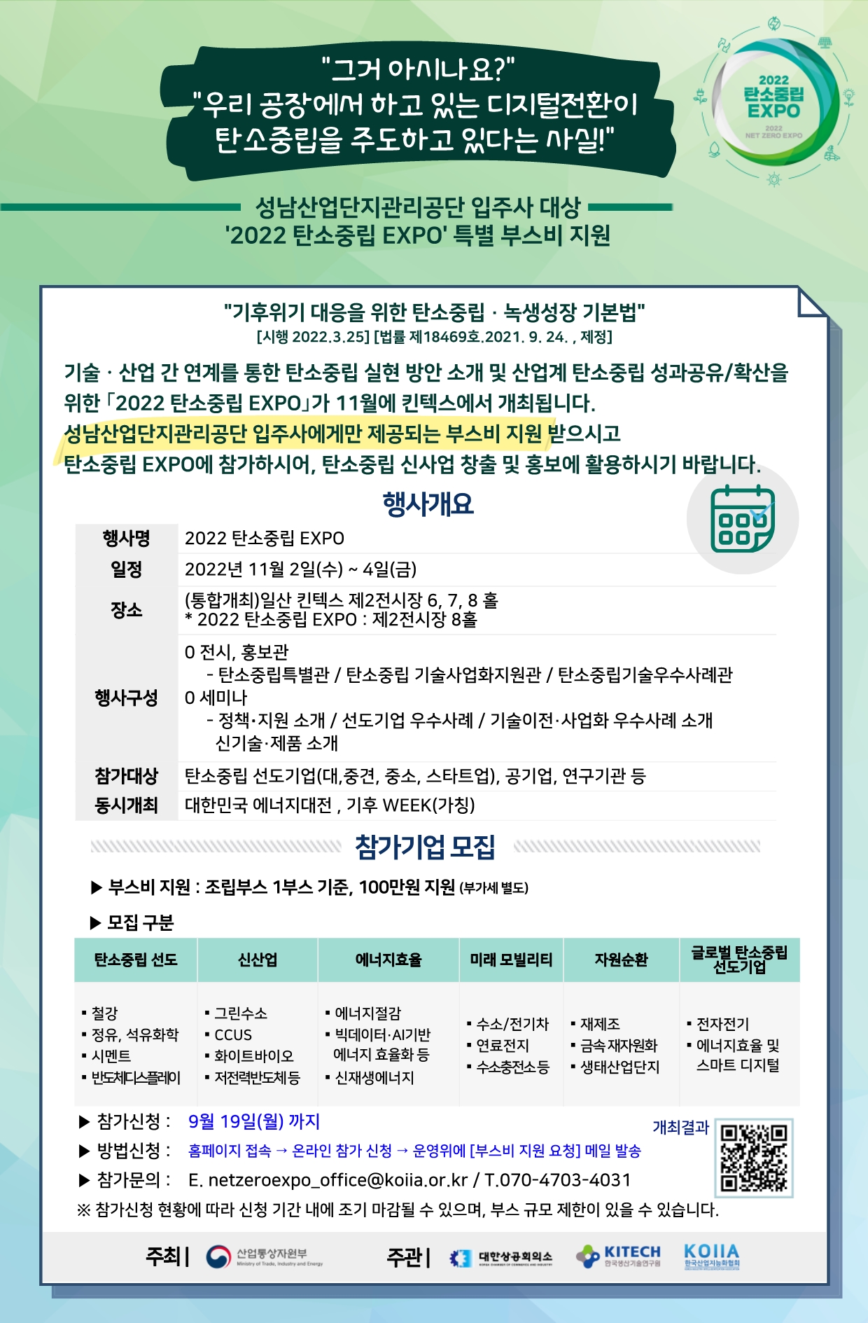 [행사] [한국산업지능화협회]2022 탄소중립 EXPO 참가 부스비 지원 안내