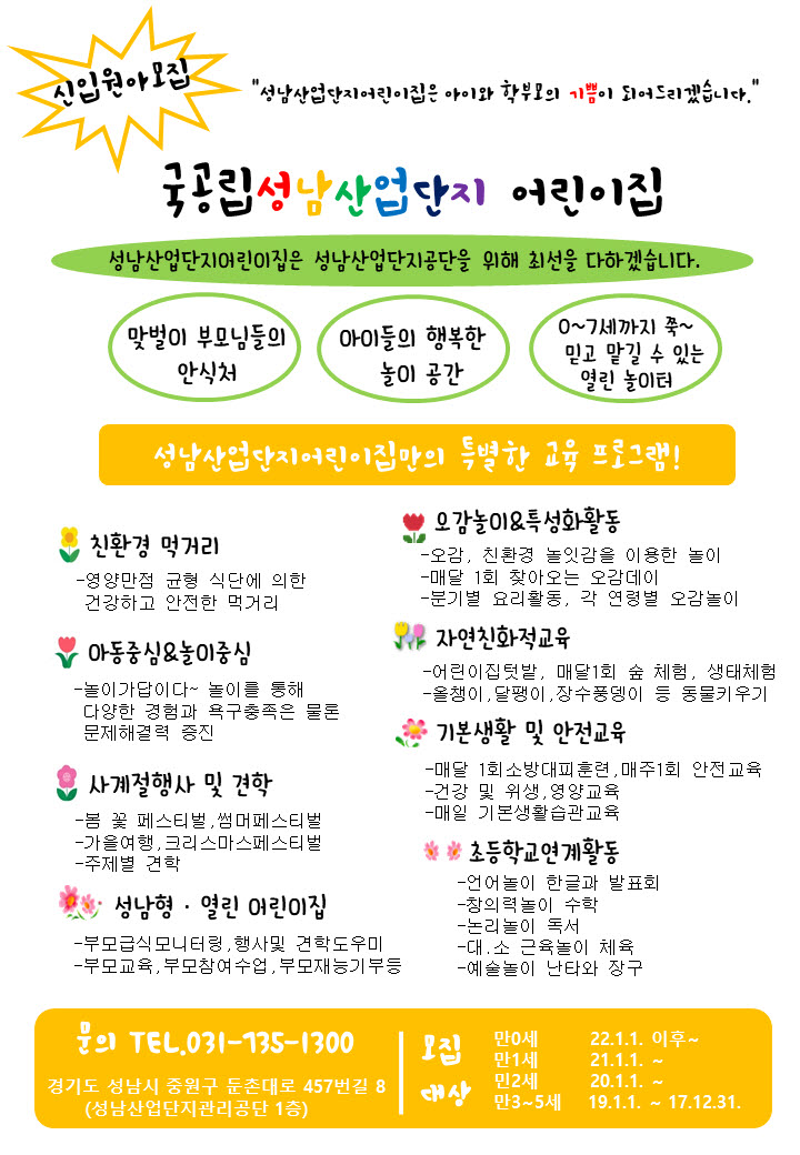 [공지] 2023년 성남산업단지어린이집원아모집