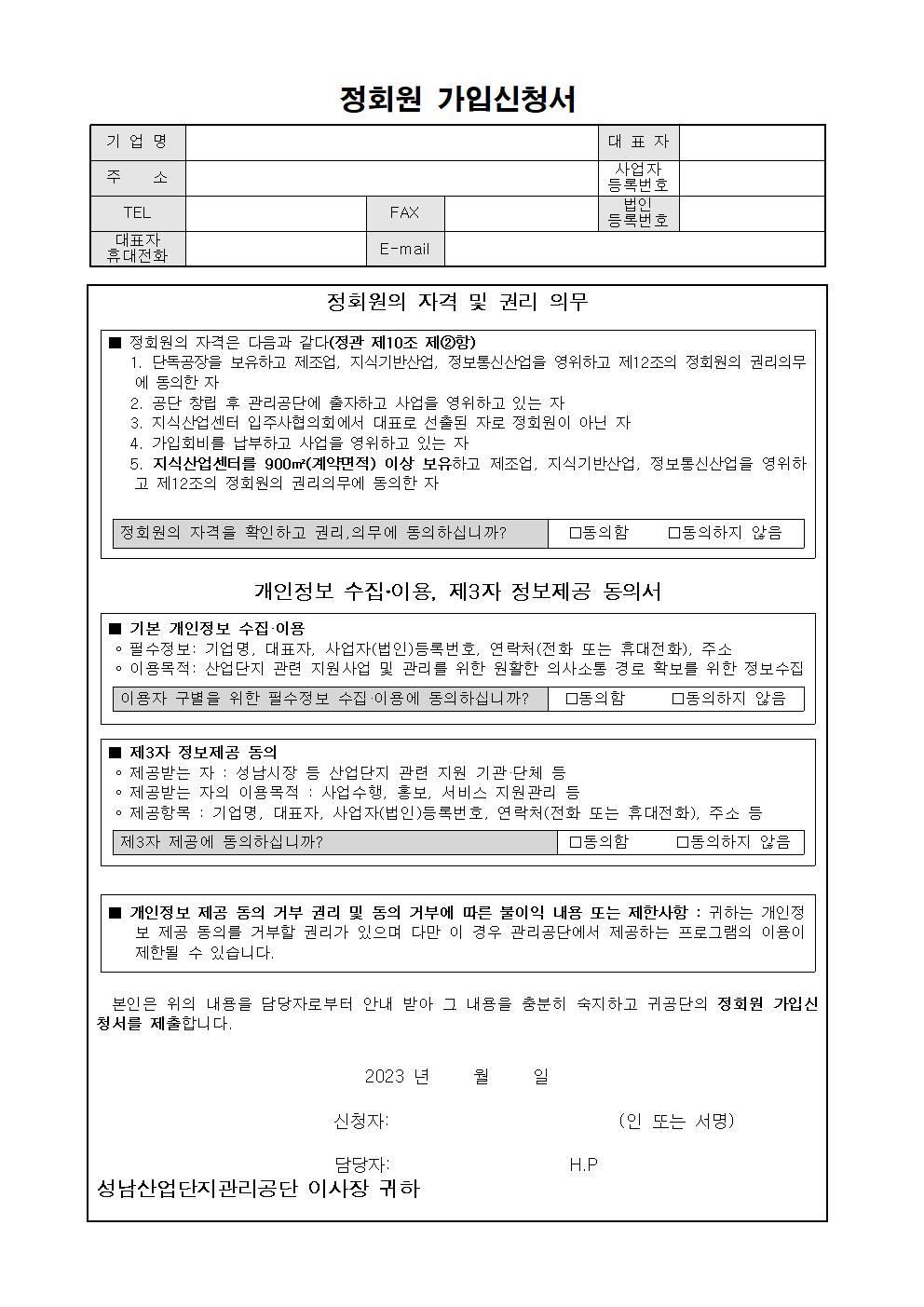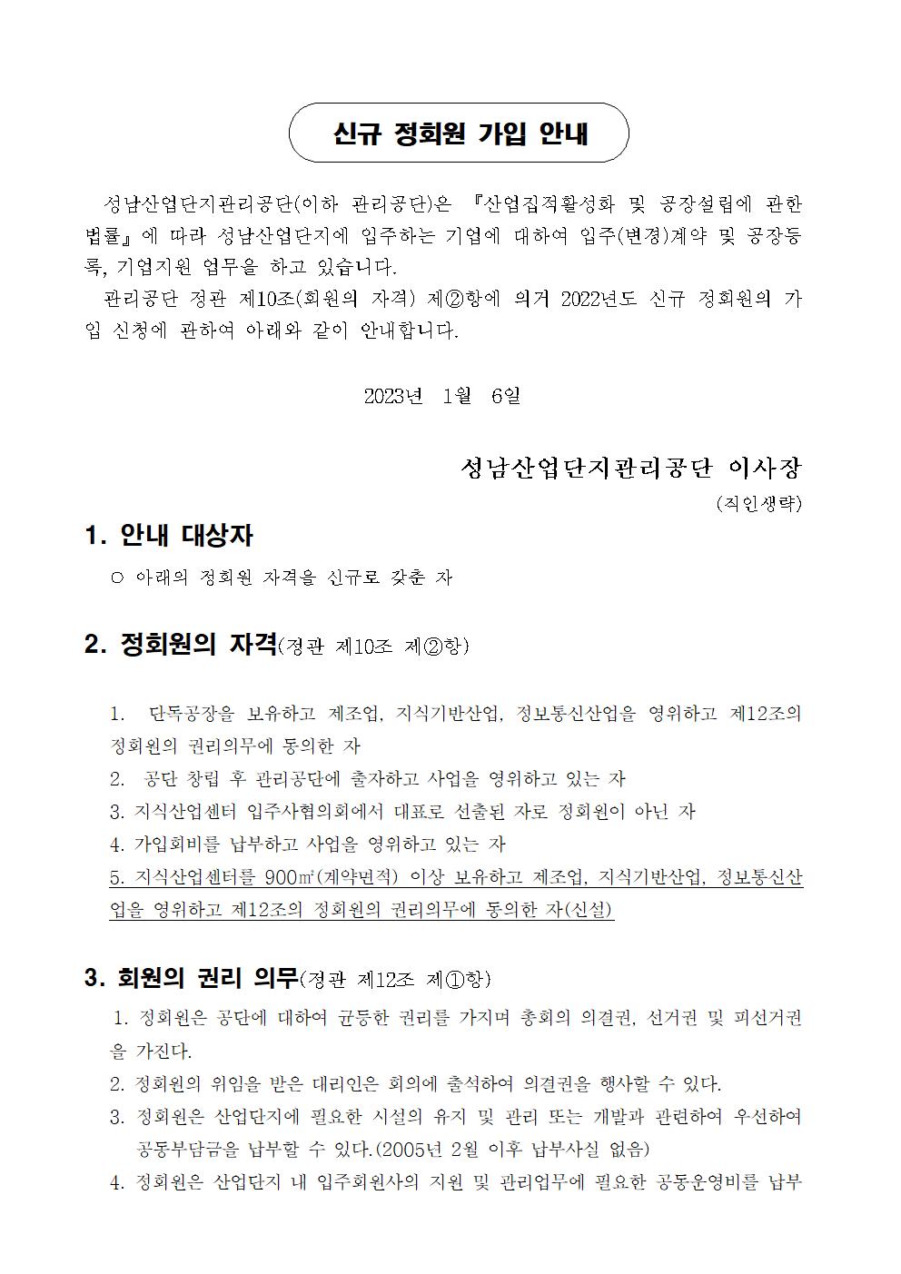 [공지] [성남산업단지관리공단]신규 정회원 가입 안내
