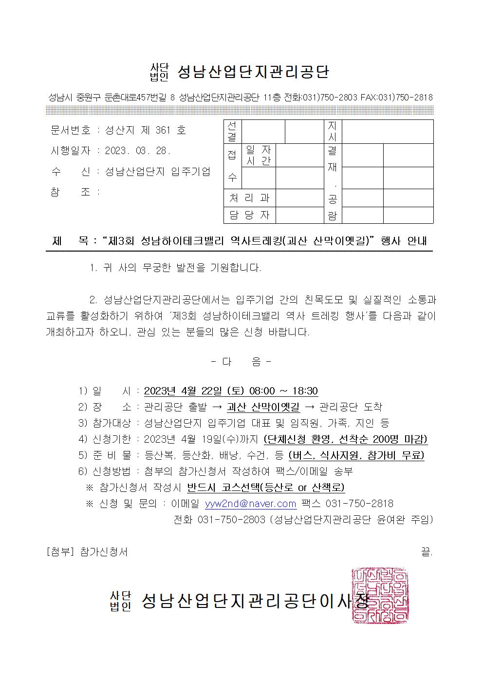 - 첨부파일: 제361호_첨부산막이옛길_트레킹_참가신청서.hwp (15.5K) -