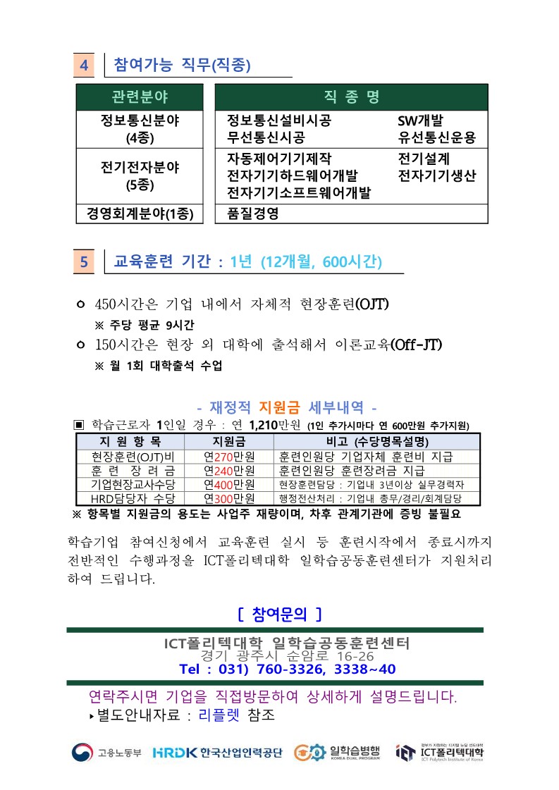 [공지] 23년도 정부 행,재정적 지원사업(일학습병행) 참여기업 상시모집 안내문