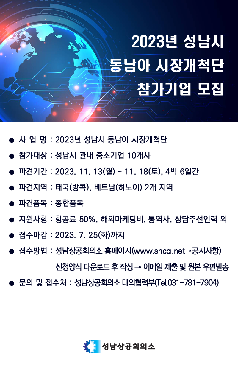 [공지] 2023년 성남시 동남아 시장개척단(수출상담회) 참여기업 모집 안내