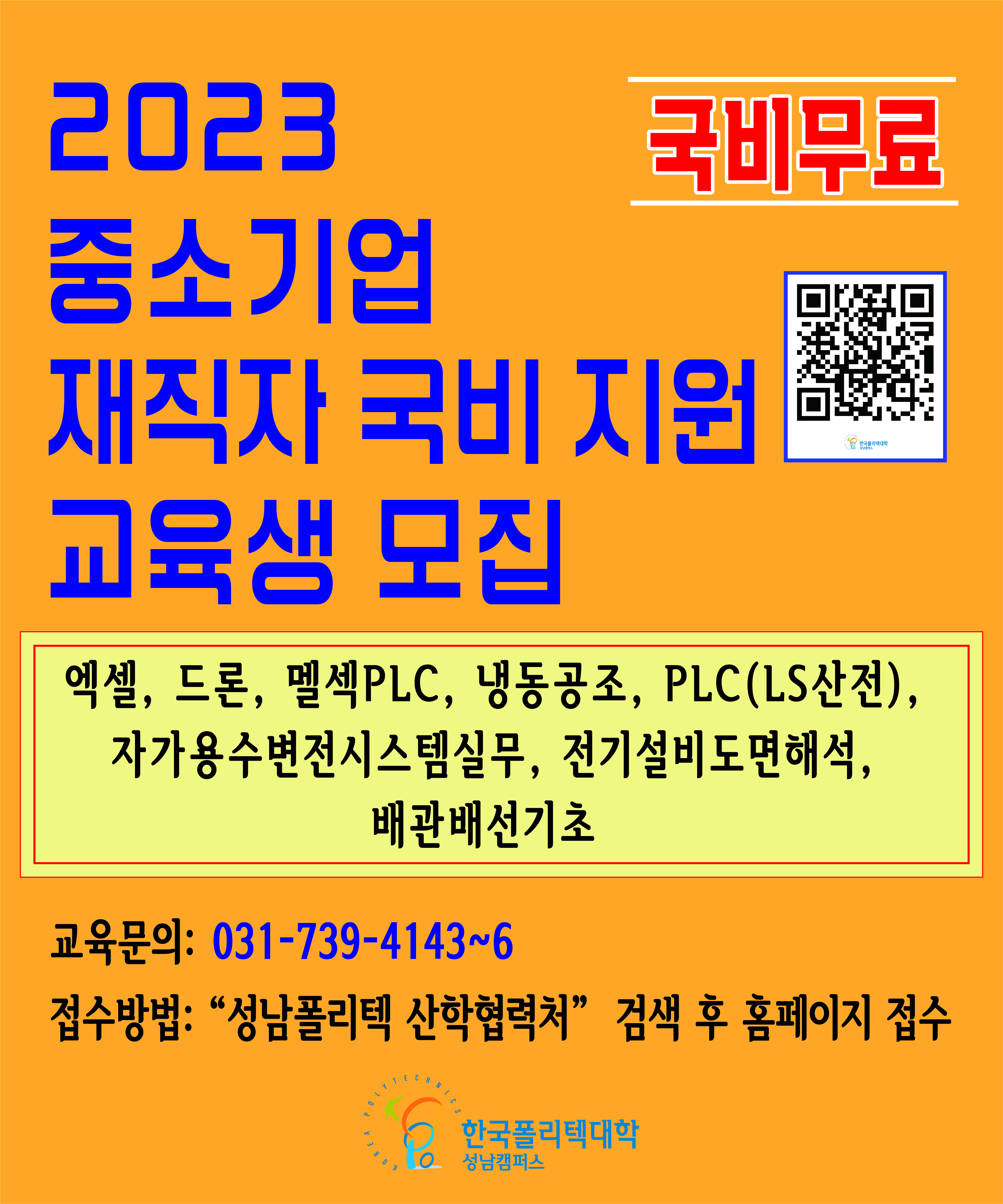 [공지] 한국폴리텍대학 성남캠퍼스 지역산업맞춤인력양성사업 국비지원 교육생 모집