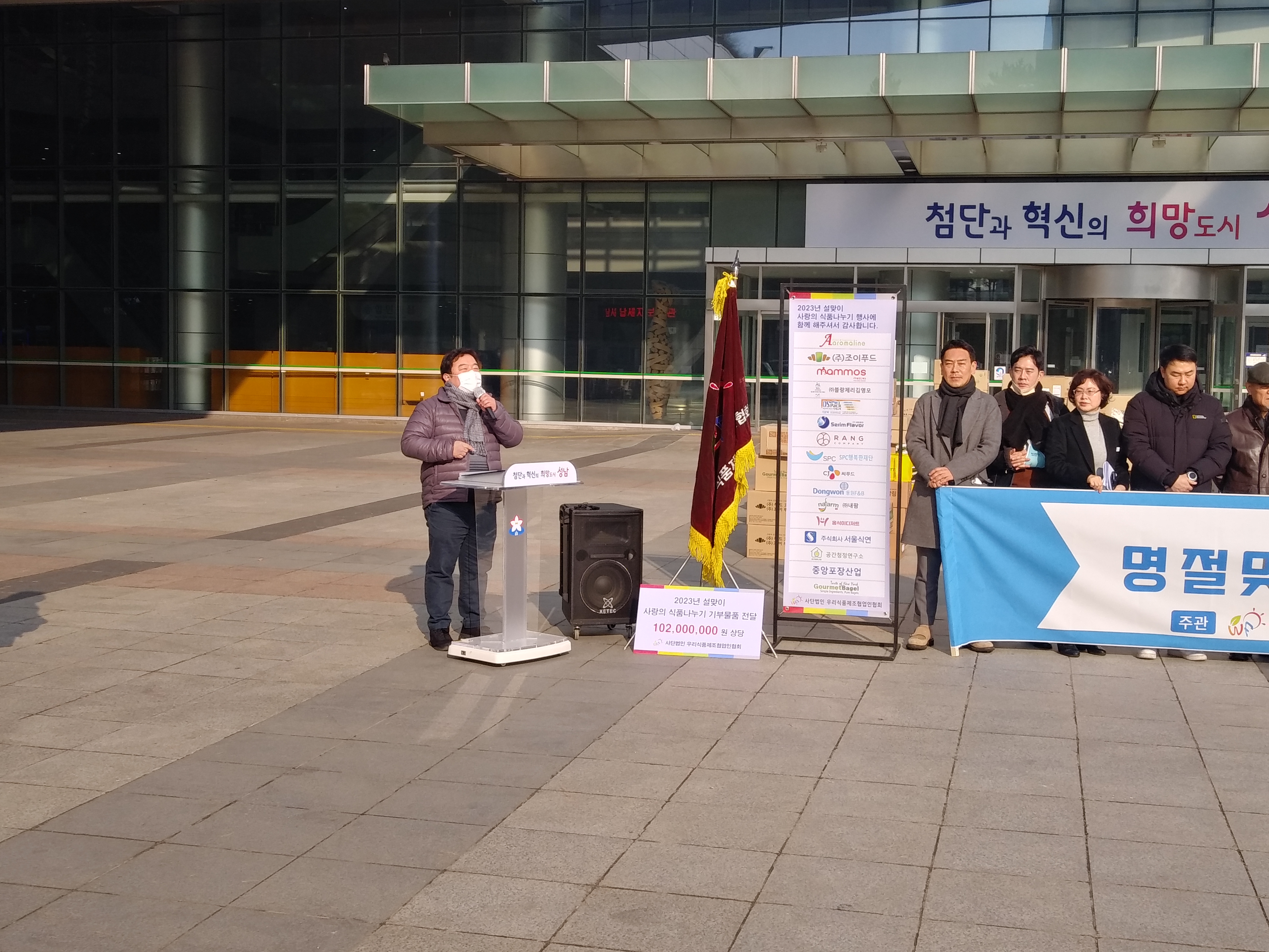 사단법인 우리식품제조협업인협회(회장 이동현)가 민족 대명절 설을 앞두고 관내 사회복지시설에 1억 2백만 원 상당의 식품을 기부했다.