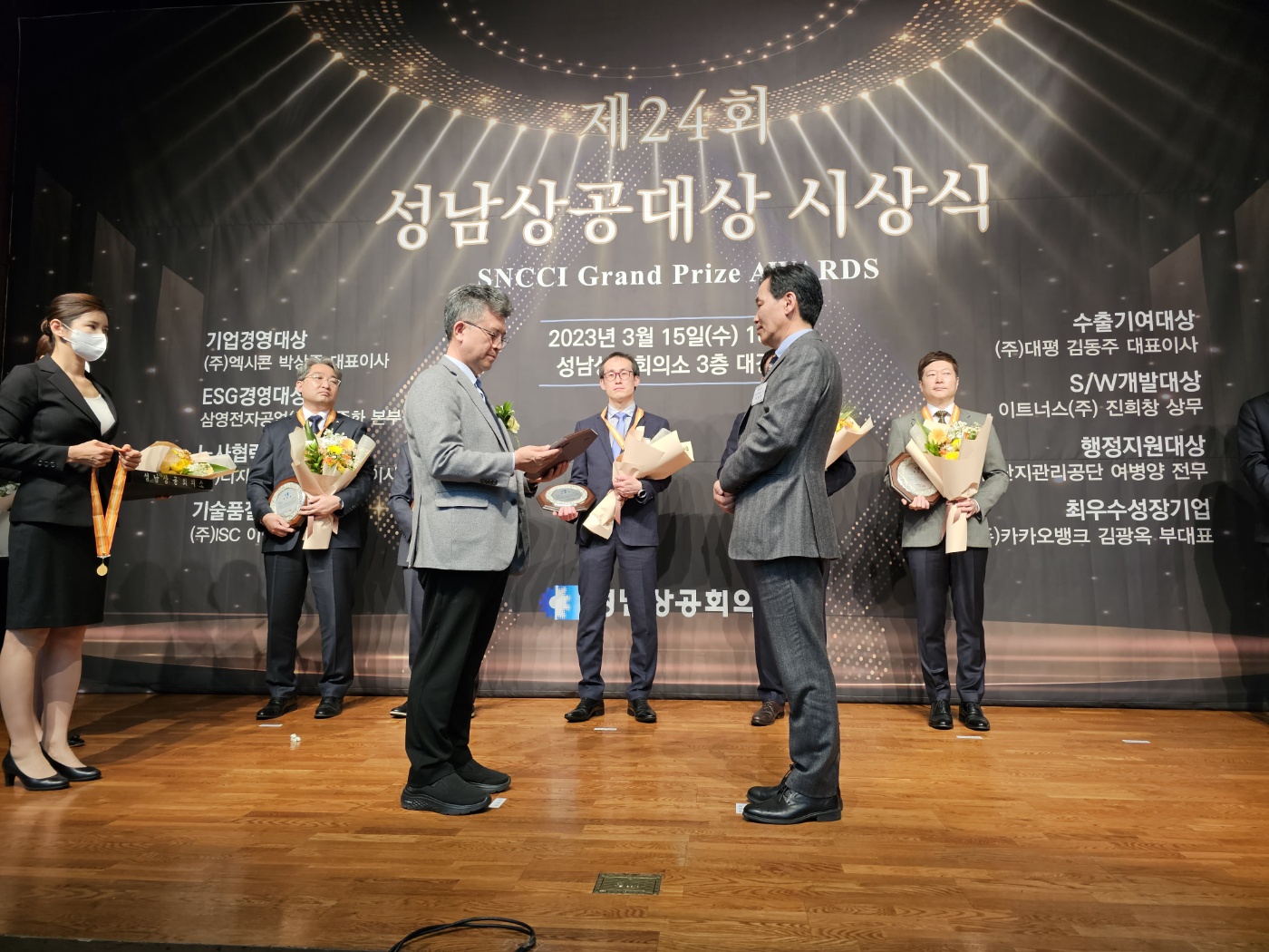 지난 15일 오후 개최된 제24회 성남상공대상 시상식에서 성남산업단지관리공단 여병양 전무이사가 행정지원대상을 수상했다.