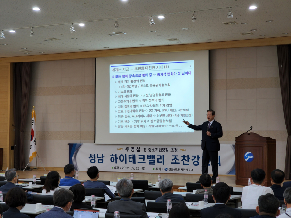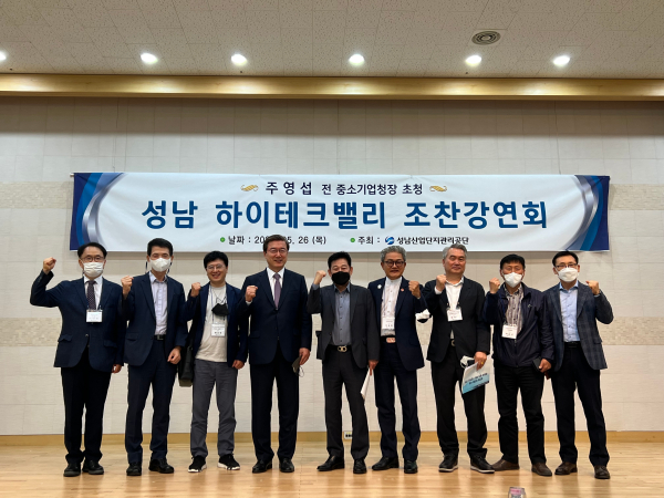 이날 강연회에는 하이테크밸리 기업 대표 및 임원들 외에도 윤영찬 국회의원, 국민의힘 신상진 후보, 더불어민주당 배국환 후보 등 성남시장 후보들도 내빈으로 참석했다.