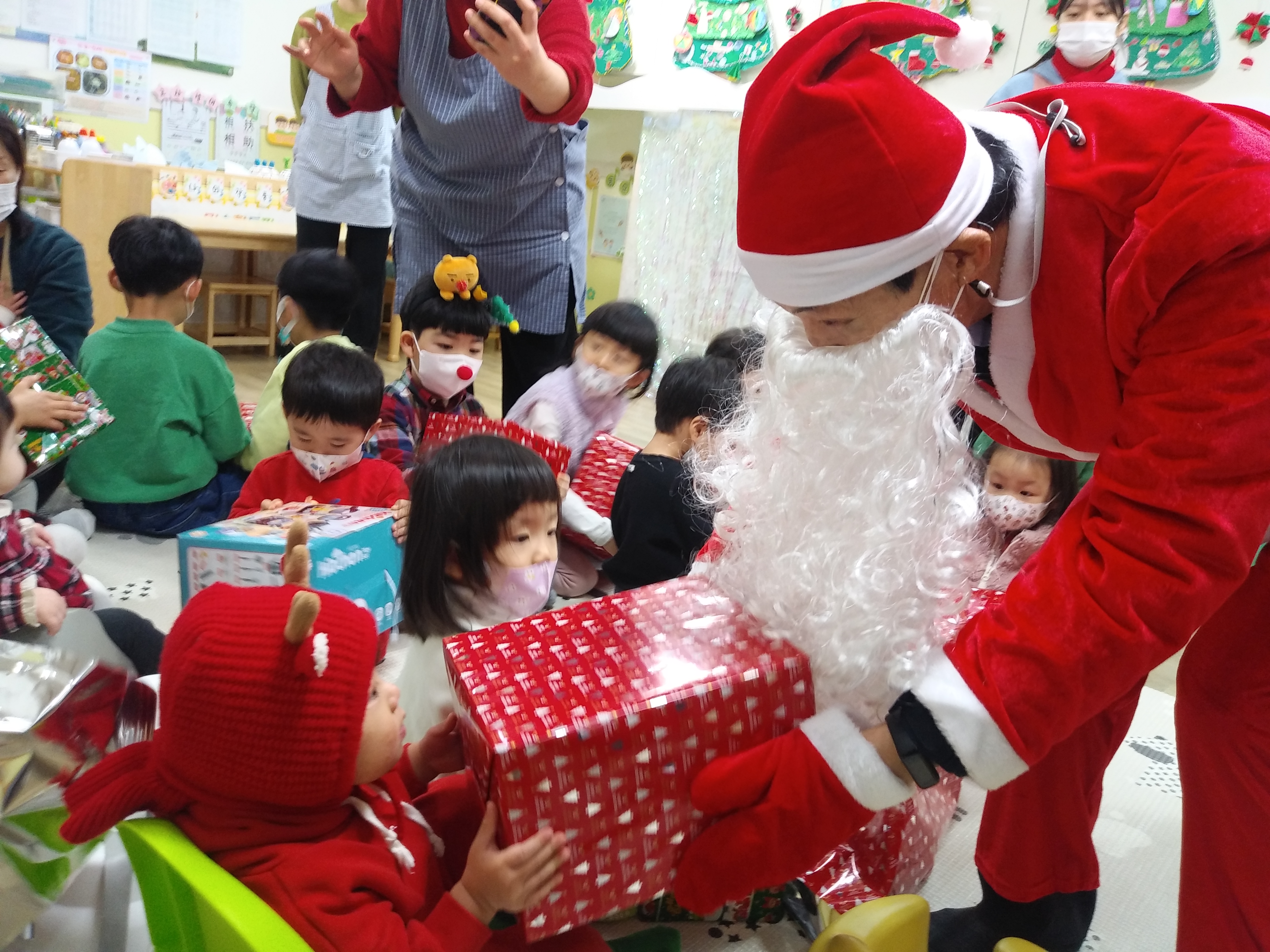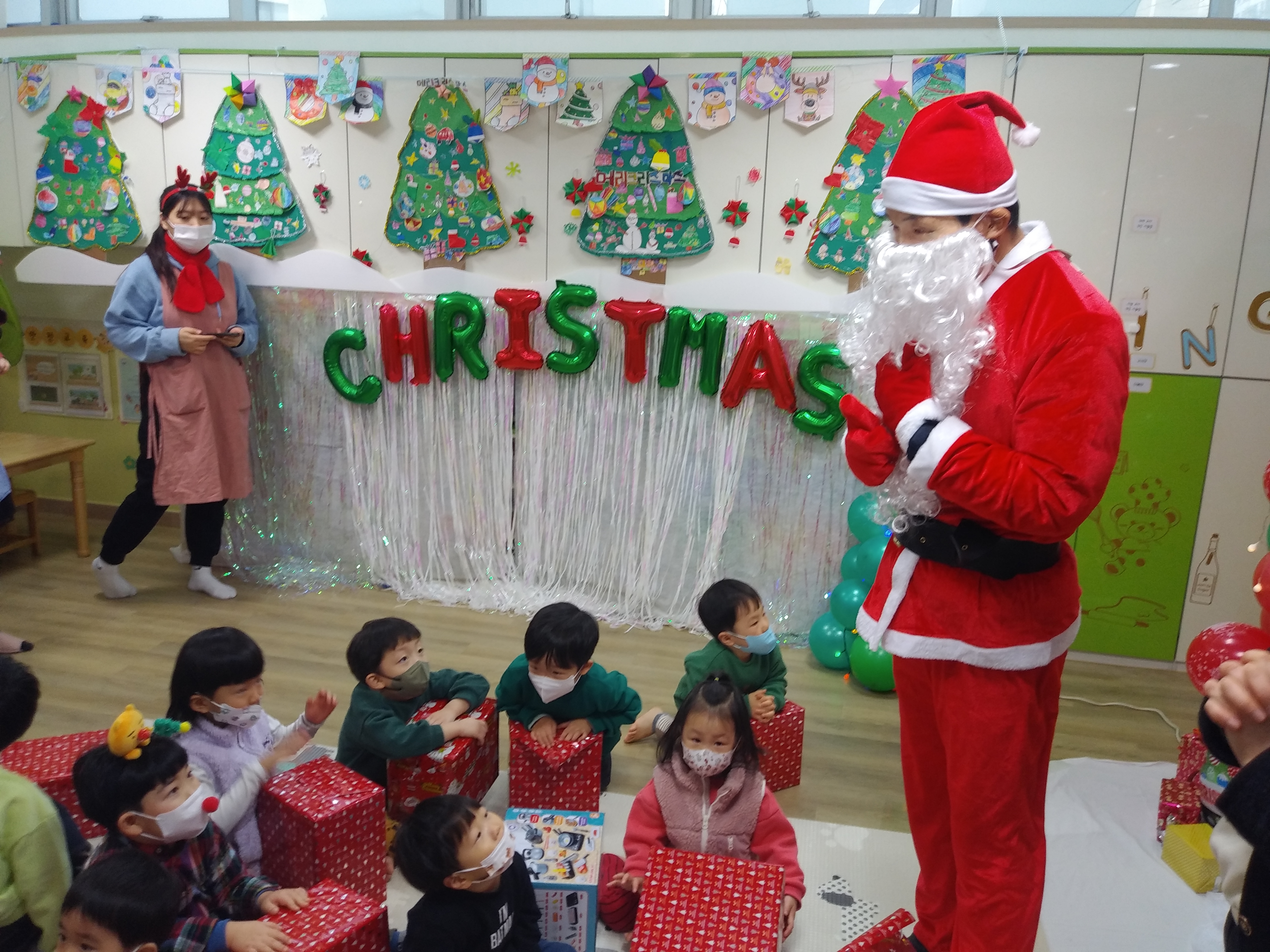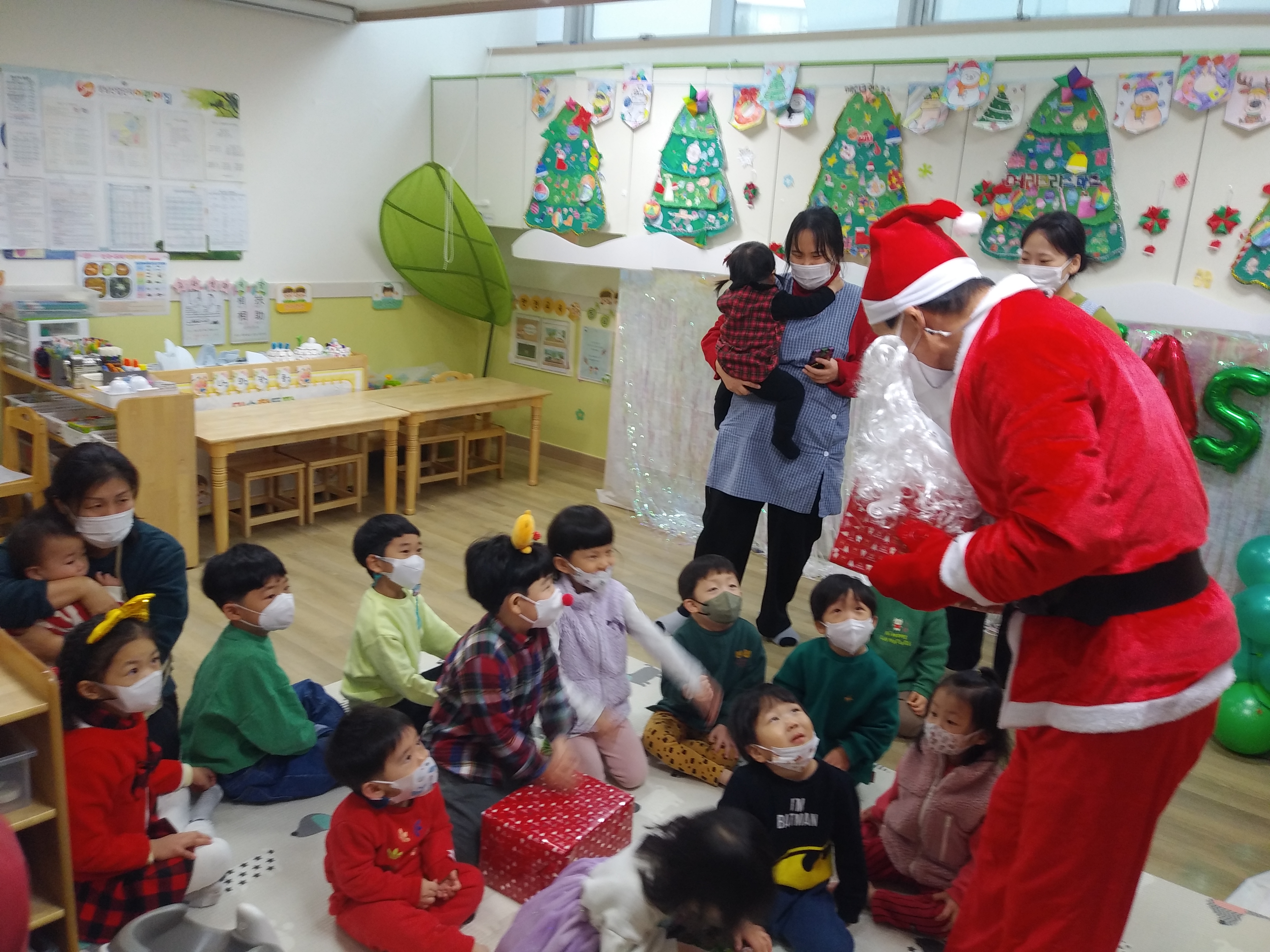 귀여운 아이들과 산타 이사장님, 어린이집 선생님 분들의 합작으로 올해 크리스마스 선물 증정식을 무사히 마칠 수 있었습니다.