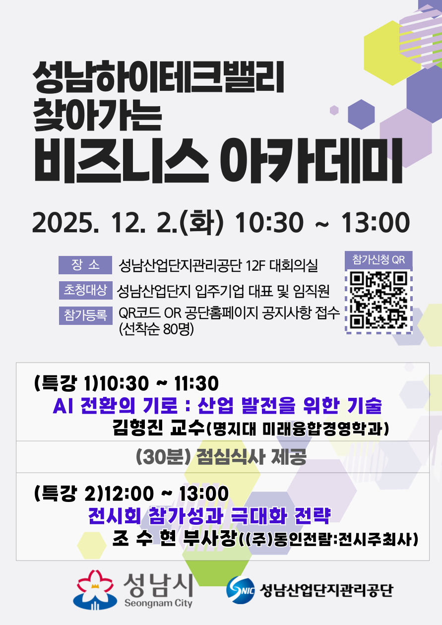 성남하이테크밸리 찾아가는 비즈니스 아카데미를 개최합니다.